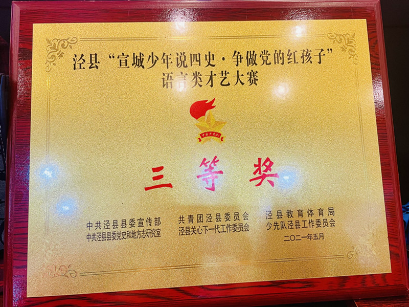 泾县第二中学选手参加县“宣城少年说四史 争做党的红孩子”语言类才艺大赛获佳绩