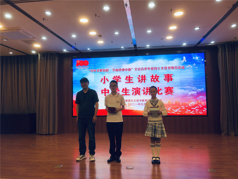 我校八(4)班姚恒硕同学在刚刚结束的泾县青少年“百年光辉历程 全面建成小康”(第27届)爱国主义读书教育活动中学生演讲比赛中,以精彩的表现获得了县一等奖。恭喜姚恒硕同学获得佳绩,并向班主任范娟老师表示祝贺!