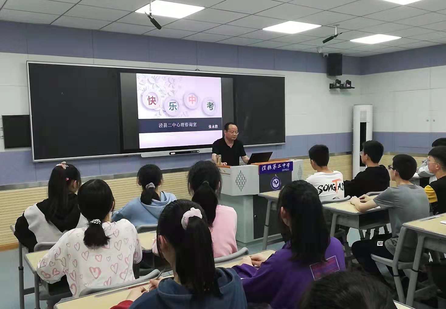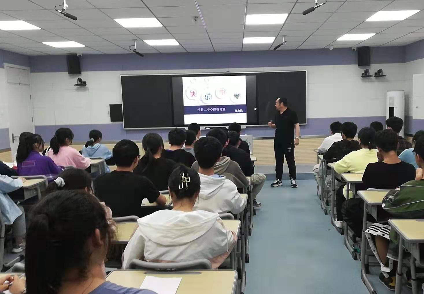伴随着六月的脚步,2021年中考已经进入倒计时。奋战三年的莘莘学子将整装待发走向考场。为力行“学史增信,立德树人”的根本任务,缓解九年级寄宿班学生考前的紧张与压力,调整复习状态,提高学生信心,5月26日晚自习前,我校在多功能教室召开了“快乐中考”考前心理调适讲座,助力学子轻装上阵、从容应考。