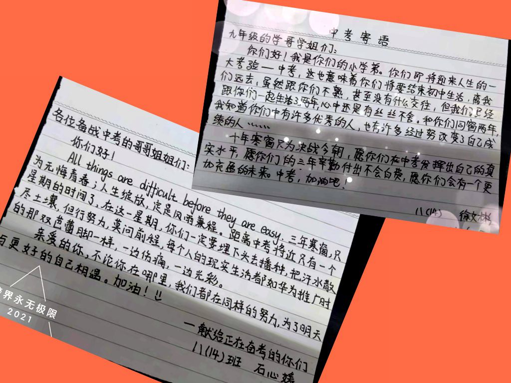 相信自己,笑看风云——八年级寄宿班给中考学子加油