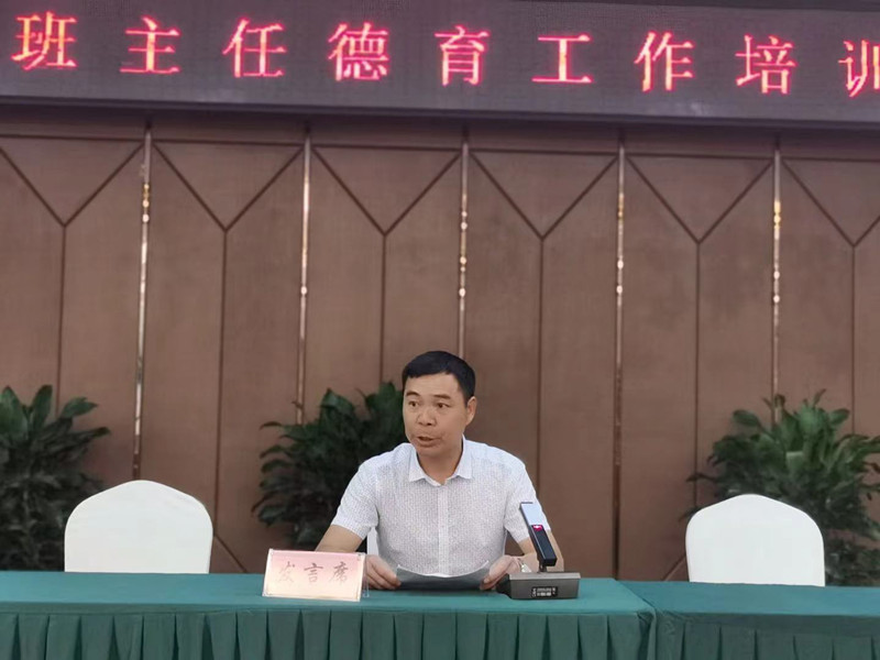 第三阶段为优秀班主任经验交流和结班仪式。在经验交流环节,七年级陈亨喜老师以《初中生学习习惯的打磨》为主题,八年级朱冬生老师以《带好“家长班”,促进家校配合》为主题,九年级黄华老师以《助心理调适,促健康成长》为主题,高中部陈兵老师以《高中生良好学习习惯的养成》为主题,分别分享了自己在班主任工作中的有效方法和经验。接着,政教处刘鸿飞主任就暑假疫情防控工作做了布置,并就班主任工作谈了自己的一些看法和建议:班主任既要做严师,也要做仁师;班级工作中既要保持平淡的生活常态,又要偶尔创造仪式感;学生管理上要看重分数,更要注重持续发展。在结班仪式上,副校长郭世东作总结发言。郭校长强调作为班主任,首先要有情怀,要有责任心;其次,要平等地对待学生,尊重学生,真正做到分层教学;再次,要注重发挥任课老师的作用,形成团队效应;最后,要不断探索与学生家长相处的艺术。
