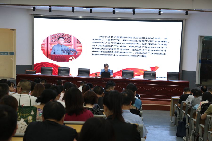 宣讲会上,徐宗保书记围绕“充分认识习近平总书记‘七一’重要讲话的重大意义,深入领会习近平总书记‘七一’重要讲话的主要内容和丰富内涵,着力推动习近平总书记‘七一’重要讲话精神走深走实走心”等方面,并结合自身学习体会,为全体教职工作了一场生动精彩的宣讲。报告紧扣主题、脉络清晰、论述透彻,既有理论高度,又有实践深度,深入浅出、内容丰富、通俗易懂,让大家备受启发,对与会人员学深悟透习近平总书记“七一”重要讲话精神提供了有益指导。