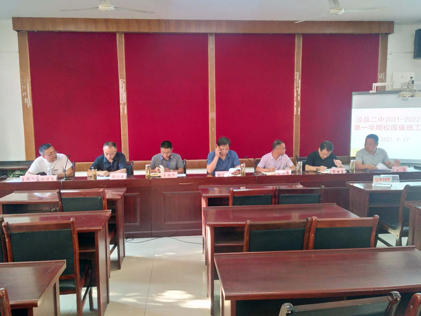 9月17日下午,我校在行政楼第二会议室召开了2021~2022学年度第一学期全体值班人员工作会议。