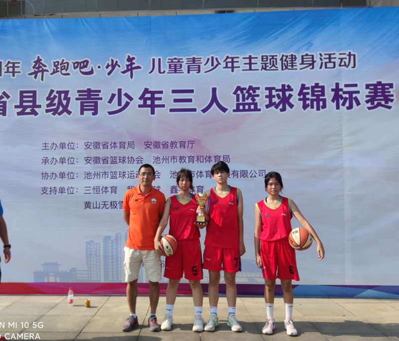 安徽省县级青少年三人篮球锦标赛9月16日-9月19日在池州市举行, 我校女子篮球队代表泾县参加此次比赛,在教练的精心指导和队员的奋力拼搏下,勇夺安徽省第二名,马诗慧同学获得最佳拼搏奖。