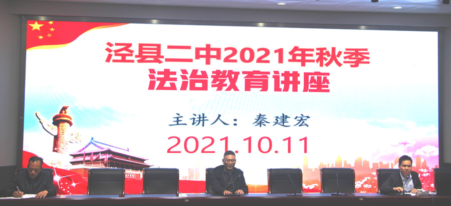 为了加强校园安全教育,预防校园欺凌事件的发生,增强学生的自律和防护意识,有效推进平安校园建设,营造和谐、友善、平安的校园氛围,10月11日下午,泾县人民法院执行局综合科科长秦建宏法官应邀来到我校,以预防校园欺凌为主题为学生开展法治教育知识讲座,高一年级两百余名师生在阶梯教室现场聆听了本次讲座。