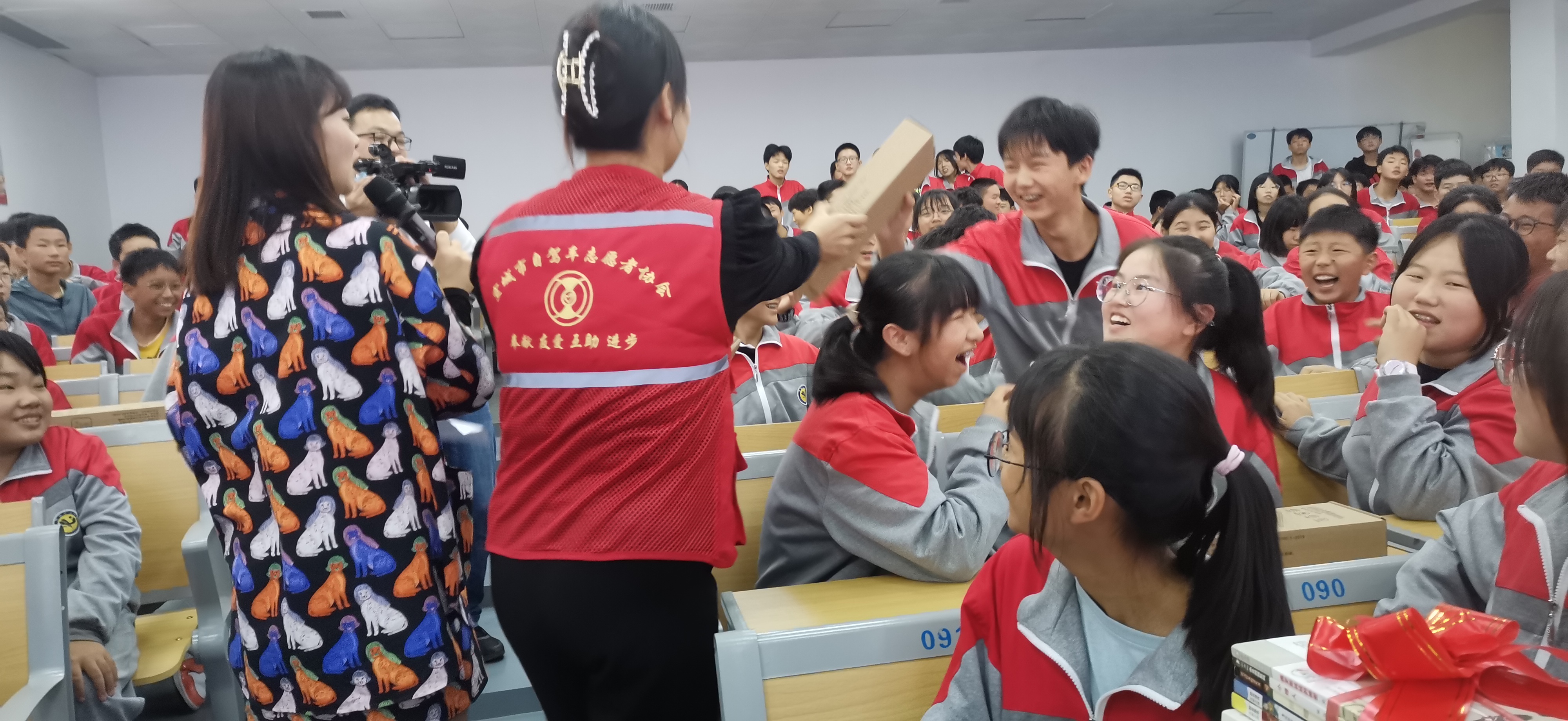 《菁菁校园》栏目组不仅拍摄了我校“关爱留守儿童”工作的日常状态,还同宣城市图书馆和自驾协会志愿者开展了“江淮读书月爱心书籍捐赠活动”,鼓励寄宿班留守儿童努力学习。