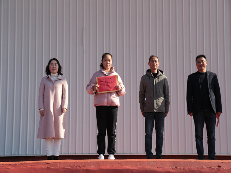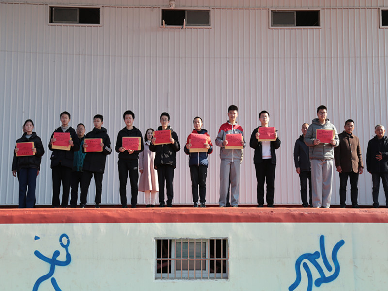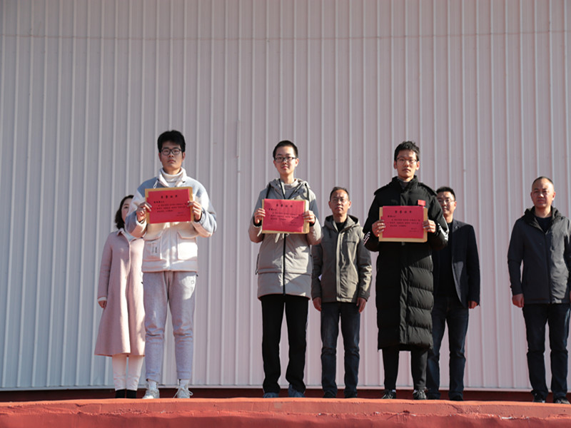 王校长依次宣读初三年级一、二、三等奖学金获奖名单、优秀学生及进步学生名单,高三年级本科之星和希望之星学生名单。校领导班子为高三本科之星和初三年级一、二、三等奖学金获奖学生颁奖并合影留念。