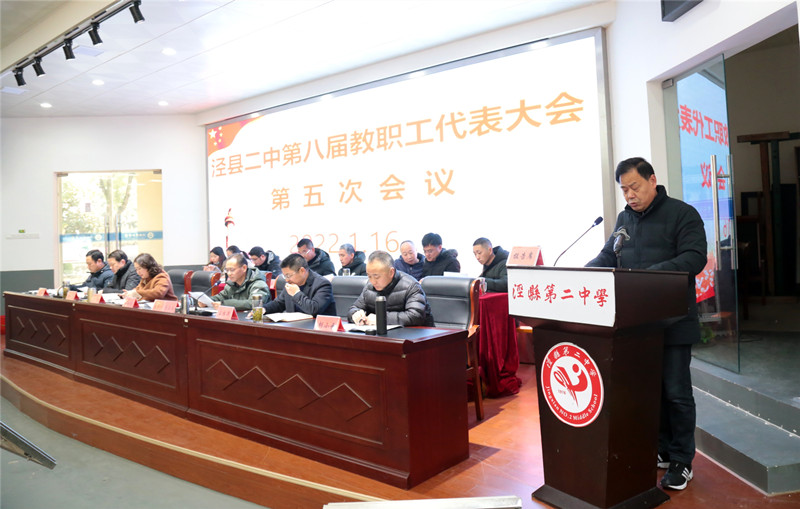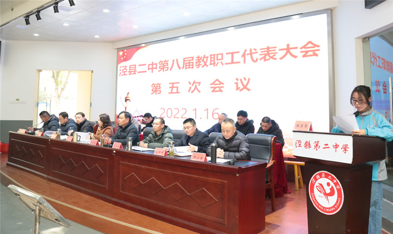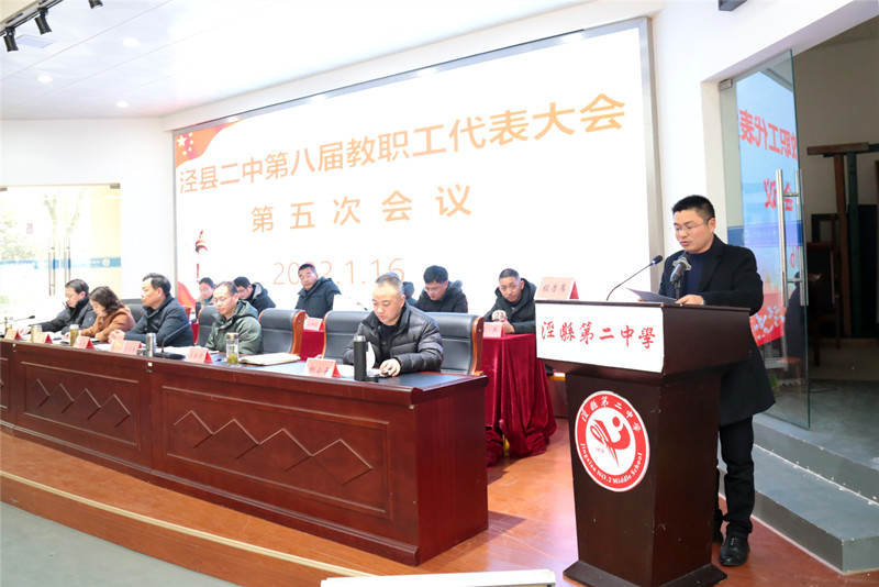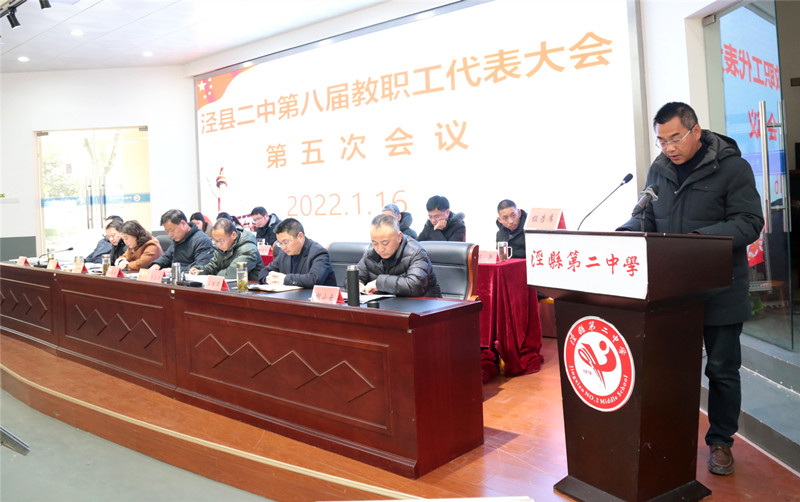 第一次全体会议(开幕式)为第一阶段,由党委副书记吴征兵同志主持。在庄严的国歌声中拉开序幕后,主持人介绍增补正式代表基本情况,提交大会举手表决,大会一致同意查岚、凤跃雷增补为正式代表。之后,全体代表听取校党委书记、校长徐宗保同志所作的《赓续百年初心 担当育人使命 奋力推进学校高质量发展》的学校工作报告;听取校工会主席胡贯平同志所作的《团结一心谋和谐,奋力拼搏促发展》的工会工作报告。在听取两个报告后,由副校长王松华同志作《泾县二中专业技术岗位竞聘量化评分细则2021修订版(草案)》修改说明;由副校长郭世东同志对部分代表提案进行客观详细答复。