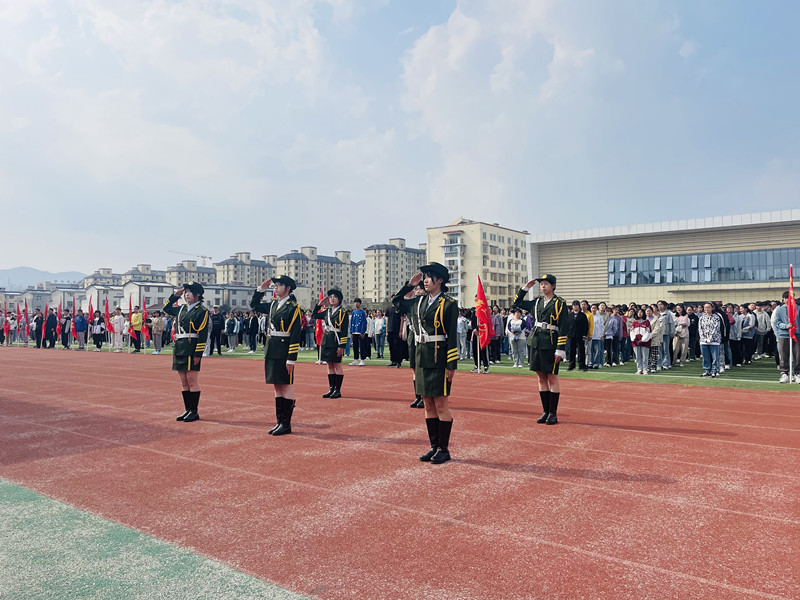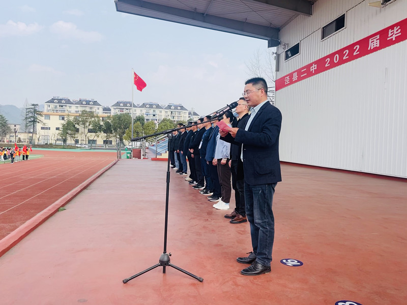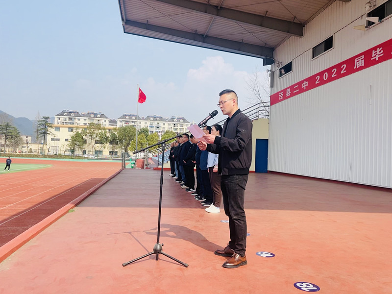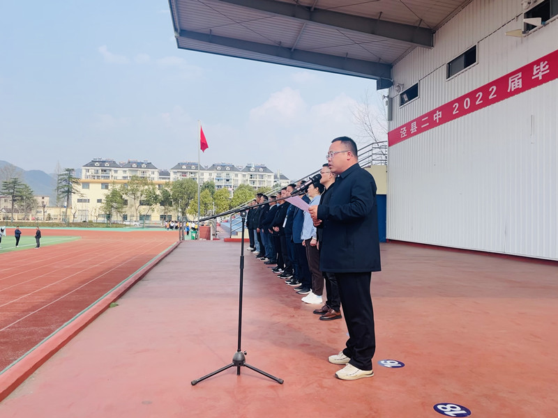 东方风来暖人间。2022年3月14日上午,泾县第二中学全体师生及泾县实验小学六年级师生齐聚校运动场,举行本周升旗仪式。