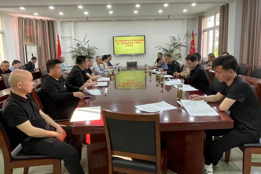 4月11日下午,我校在行政楼第一会议室召开2022年初中学业水平考试理科实验操作、体育考试泾县二中考点工作培训会。会议由副校长郭世东主持,全体考试工作人员参会。