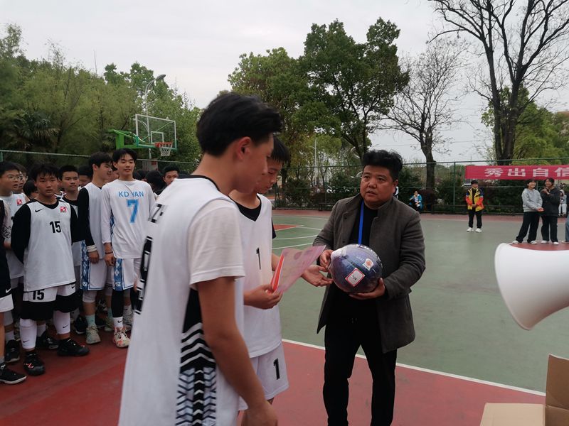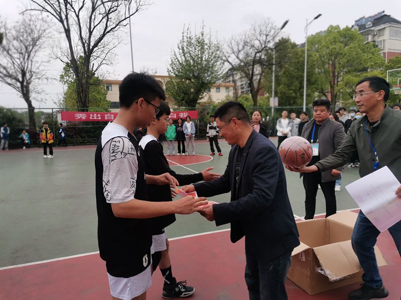 4月14日下午,随着裁判的一声终场哨声,我校第九届八年级篮球赛在校篮球场顺利落下帷幕。校党委副书记、副校长卫建平、副校长王松华及相关处室领导观看了比赛并为获奖班级颁奖。