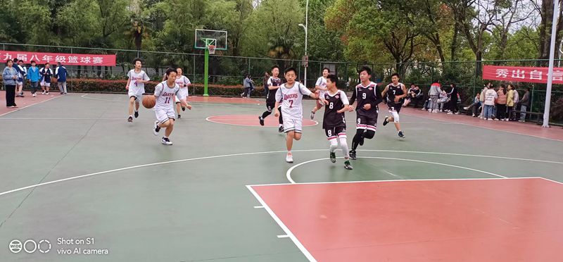 八年级各班级篮球队员在为期九天的比赛中奋力拼搏,展现出了积极向上的精神面貌,各班学生积极参与,为本班队员加油助威。最终,八(13)班、八(14)班、八(5)班、八(12)班分获第一、二、三、四名。