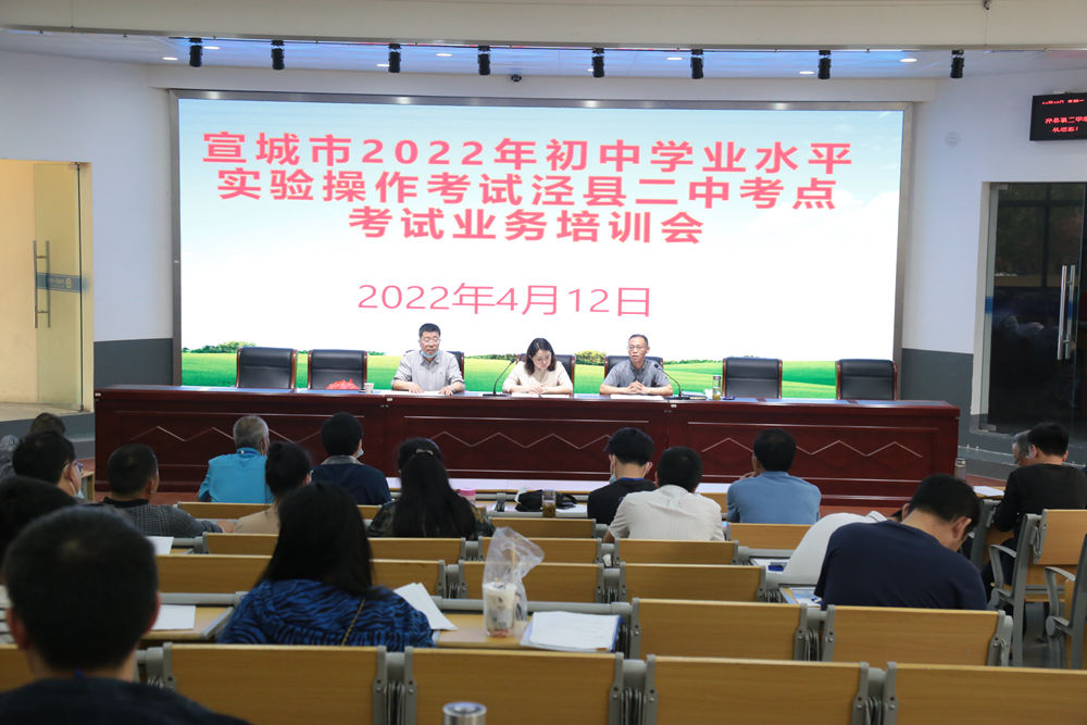 为确保考试各项工作规范顺利进行,4月12日下午,泾县二中考点考务组召开泾县2022年初中学业水平理科实验操作考试业务培训会,监考教师、考务及纪检等全体工作人员参加会议,会议由主考吴征兵主持。