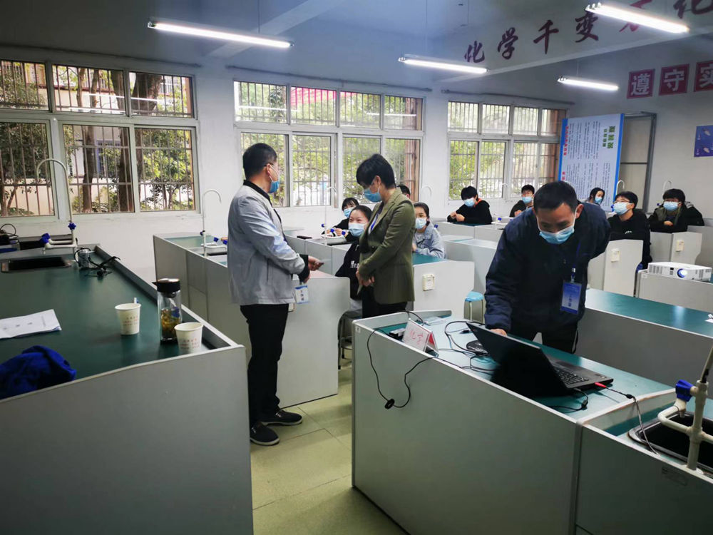 各考场副主考会后在理科实验操作考场对监考教师进行了相关业务培训。