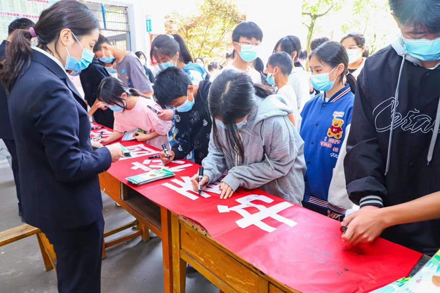 接下来,学校学生开展了自发签名活动,在活动现场,泾县检察院干警为学生捐赠了文学和法律方面的书籍,还发放了以案释法的漫画读本、宣传单。活动现场气氛热烈。