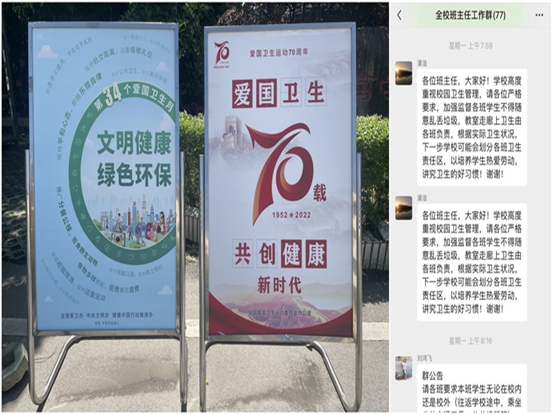 我校深入贯彻落实习近平总书记关于爱国卫生运动的系列重要指示批示精神,全力推进文明校园创建,切实加强健康知识科普,广泛普及文明健康、绿色环保的生活方式。校总务处宣传卫生健康知识,呼吁全校师生热爱劳动、讲究卫生。政教处持续宣传公共卫生的重要性,常态化组织开展核酸检测工作,倡导师生养成良好的卫生和防疫习惯。团委组织八年级青年志愿者们深入卫生责任区,对校园公共卫生区域开展清洁工作,带动引导广大师生进一步增强爱护环境、保护环境的意识。