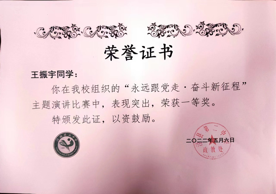 经过紧张、有序的比赛和评委认真、严谨的打分,通过两轮淘汰赛的磨砺,最后本次活动评选出了一等奖2名,二等奖3名,三等奖4名,其中高二(4)班的王振宇同学脱颖而出,获得了一等奖的第一名。