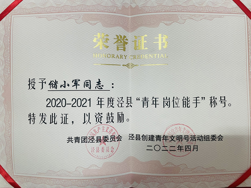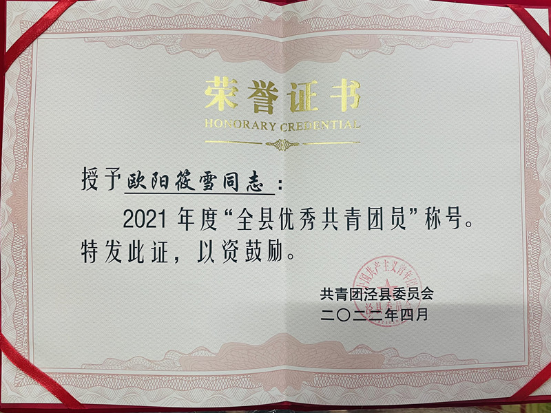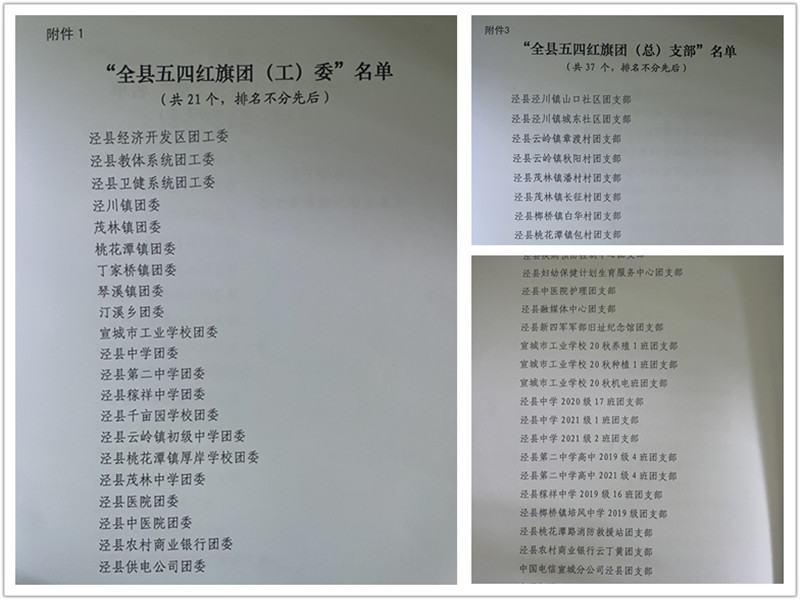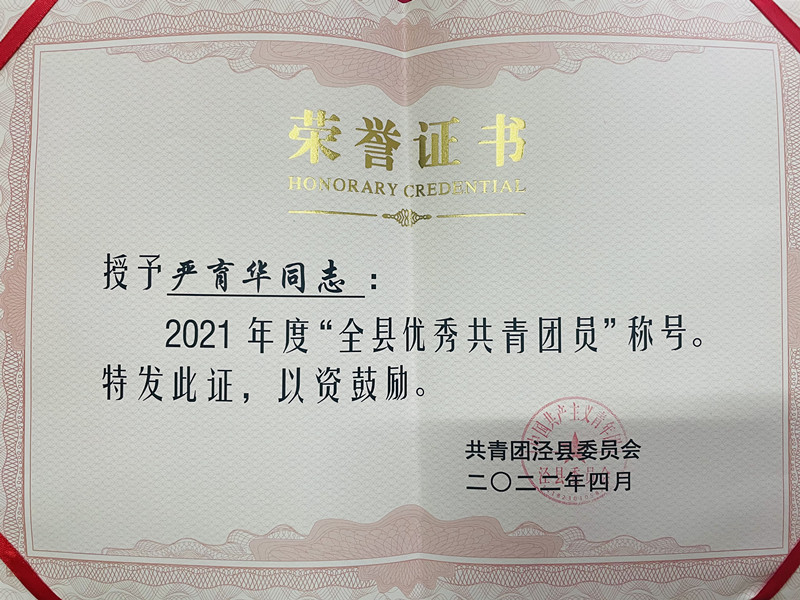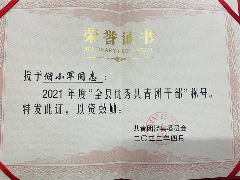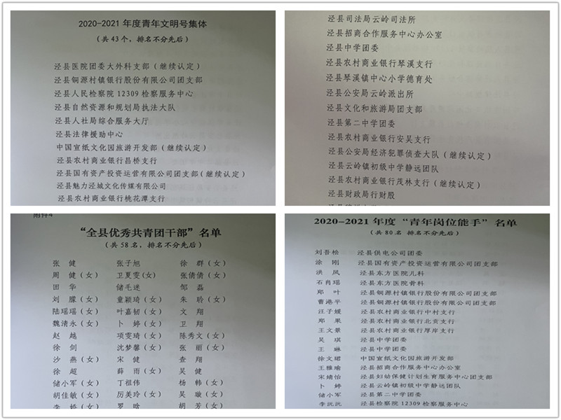 在“忆百年团史·青春答卷”部分,团县委对2021年度优秀共青团集体和个人进行表彰。我校团委喜获2021年度“全县五四红旗团委”、2020-2021年度泾县“青年文明号”荣誉称号;储小军老师获2021年度“全县优秀共青团干部”、2020-2021年度泾县“青年岗位能手”称号;2019级4班团支部、2021级4班团支部被表彰为“全县五四红旗团支部”;严育华、欧阳筱雪同学获2021年度“全县优秀共青团员”称号。