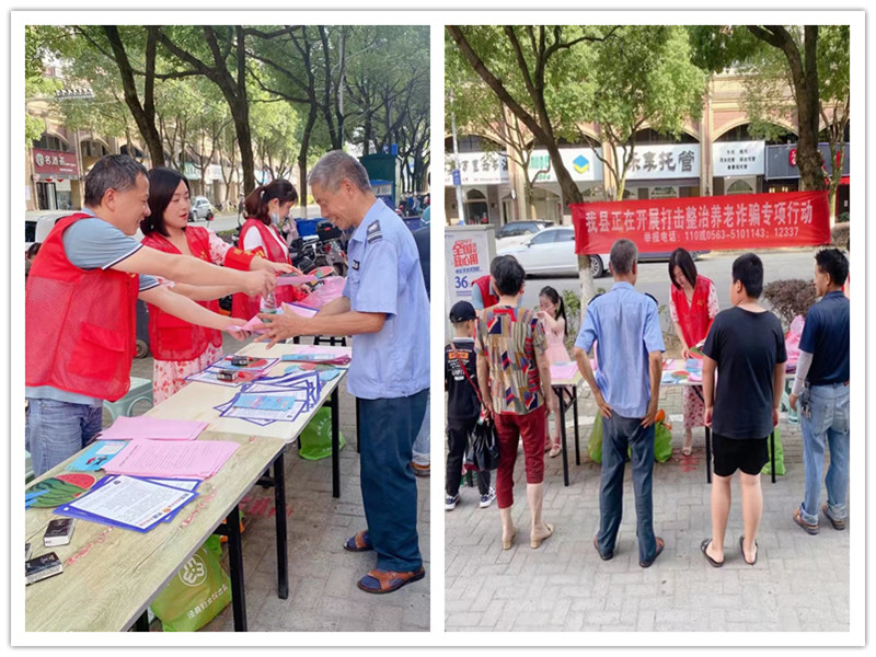 与此同时,泾县第二中学党员干部、行政人员组成志愿服务队,协助城南社区和路段包保牵头单位,每周定期进网格、上路段,发放宣传单、讲解“文明创建”知识、进行模拟问卷调查、征集群众意见和建议、开展“大清扫、大起底”活动、上报不文明问题。6月18日下午,泾县二中志愿者联合实验小学与城南社区共同开展“文明县城”、“防溺水”、“防养老诈骗”宣传活动,并为市民带去小礼品。