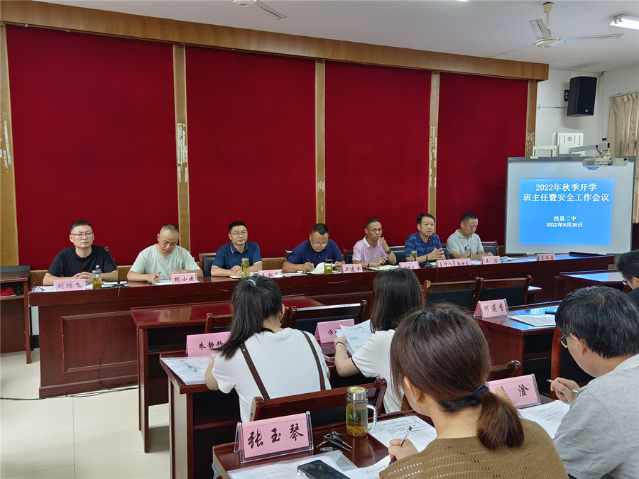 8月30日下午,泾县二中2022年秋季开学班主任暨安全工作会议在行政楼第二会议室召开,学校领导、全体班主任和行政值班人员参会,副校长郭世东主持会议。