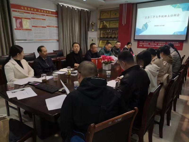 第二阶段为七年级班主任工作交流与汇报。首先由聂友、方娟娟、朱静静、孙楚四位年轻班主任围绕班级常规管理、特殊家庭学生教育方法、班级的团队建设等问题进行了汇报交流。随后教导处主任吴文君、吴福美,政教处主任刘鸿飞,和在座的班主任老师真诚分享了自己从事班主任工作的管理经验,就目前班主任面临的困惑、学生管理探究、家校合作、凝聚团队力量这四个方面和大家探讨交流。会议中,副校长郭世东强调要加强学生的行为习惯教育,要针对不同学生的性格特点寻找适合的方式方法,要用爱去教育引导孩子。