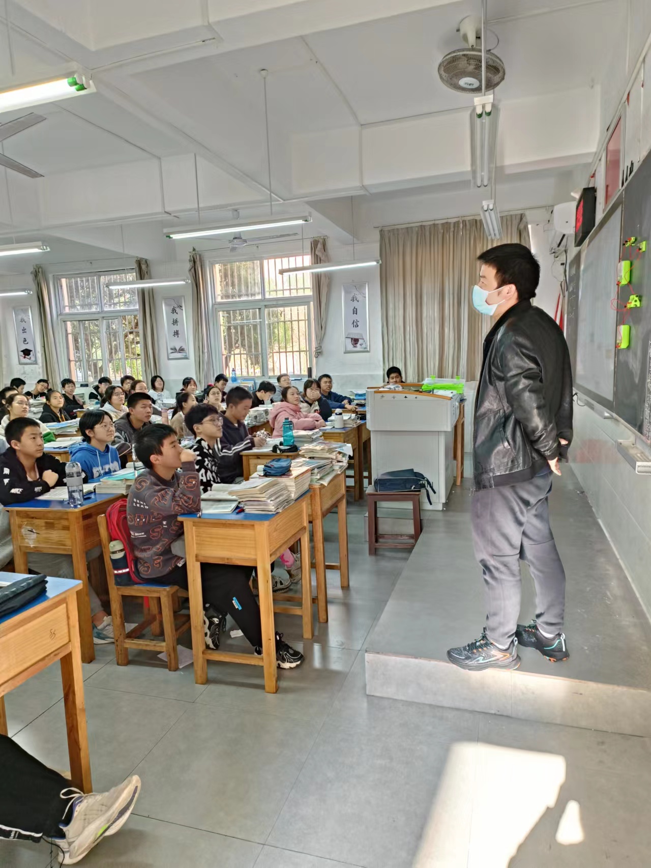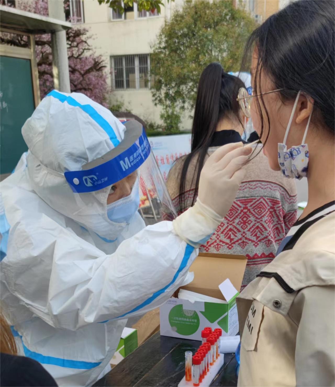 高中部及初中寄宿班两百多名学生开启正常的作息时间,驻守在校的校领导及教师从早读开始到晚自习结束,全天在学校陪伴住校生一起学习、就餐,并对新建高中部班级及初中寄宿班级进行精心化、精细化、精准化管理,详细记录住校生在校日常学习和生活情况,及时向学校上报,与家长及时沟通。在参与封闭管理的全体老师的关心和陪伴下,学校为做好住校生疫情防控工作,按照全县统一要求,每天联系医务人员专程到校为住校生和相关工作人员做核酸检测,班级每天实行体温检测和消杀,同时启动双隔离室机制(宿舍和教室各设一个隔离室)