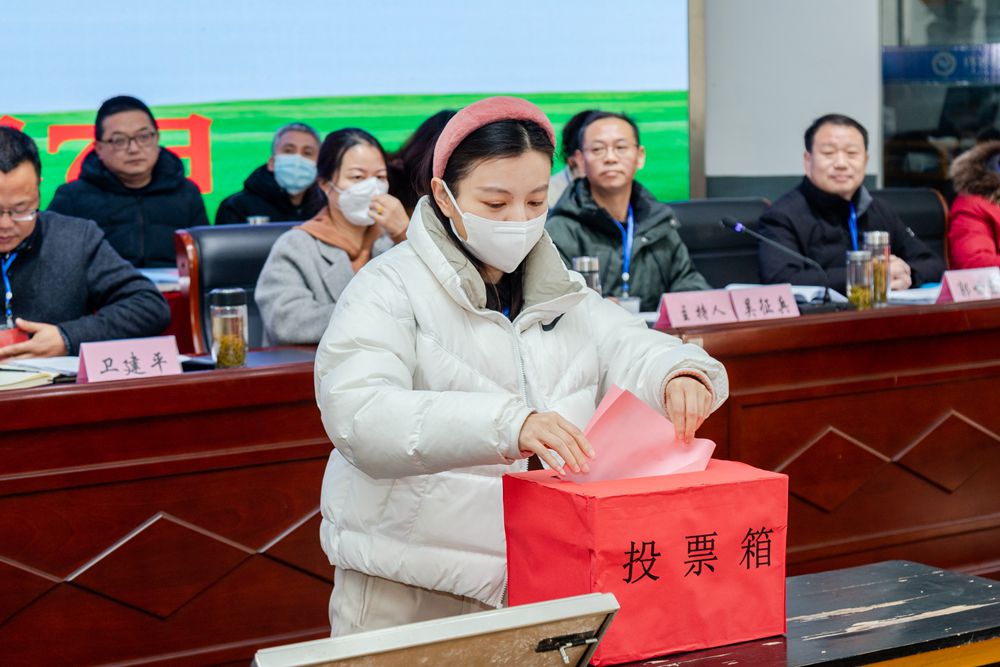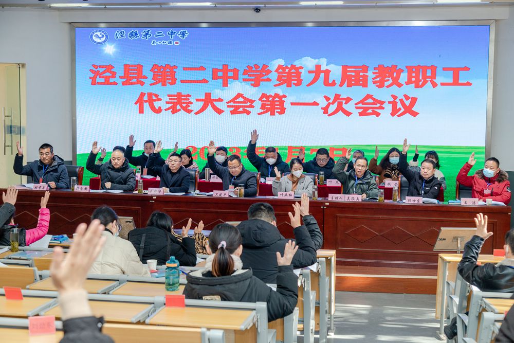 正式会议的第二阶段,首先全体代表举手表决通过了学校工作报告、工会工作报告以及大会选举办法(草案),并通过了监票人、唱票人、计票人名单。随后选举产生了本届工会的七名委员。上级工会领导叶亚梅同志对我校工会工作提几点要求:一是希望泾县二中工会自觉接受学校党委领导,积极争取行政支持,二是希望泾县二中工会委员牢记“三个务必”, 三是希望泾县二中广大工会会员,胸怀大局,志存高远。接着,校党委委员、副校长郭世东致闭幕词。