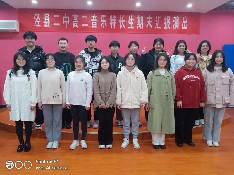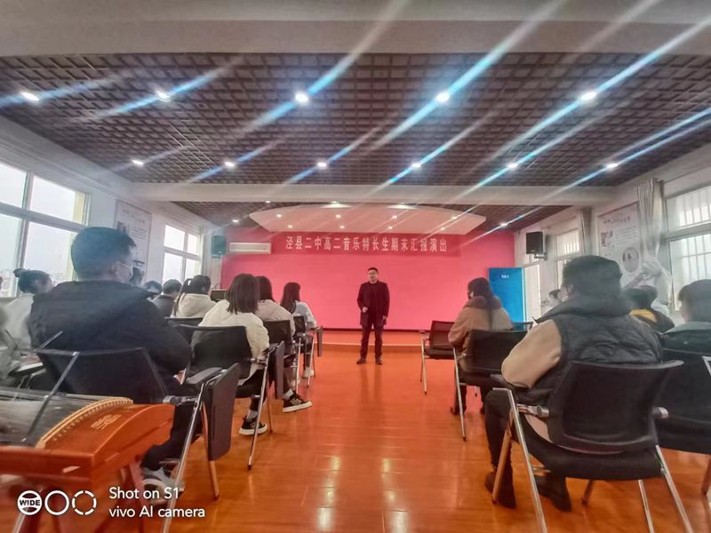 为全面贯彻党的教育方针,落实国家“双减”政策, 丰富校园文化生活,提高我校高中特色办学成绩,1月13日下午,我校在艺术楼合唱教室举行泾县二中高二音乐特长生期末汇报演出。校党委副书记、副校长卫建平、副校长王松华、高二全体音乐特长生、高二音乐特长生家长及高一年级部分音乐爱好者观看演出。