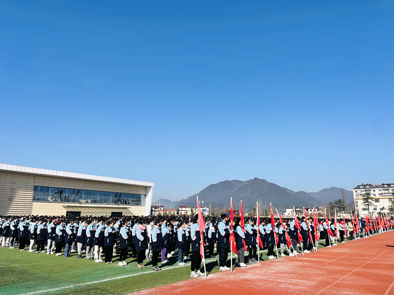 花开沃野,春暖二中。2023年2月27日上午,泾县第二中学全体师生齐聚校运动场,举行本周升旗仪式。