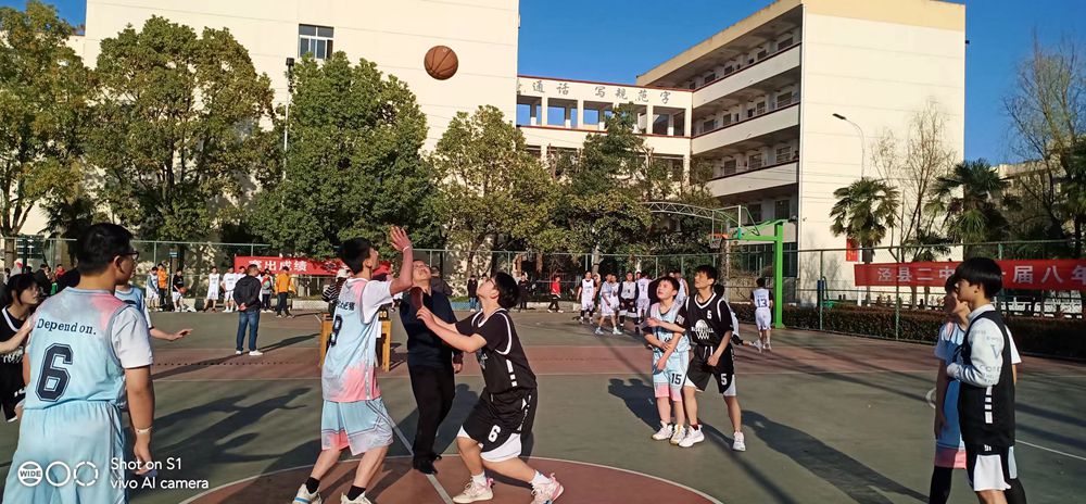 为全面贯彻党的教育方针,落实国家“五项管理”和“双减”政策,丰富学生的课余生活,3月13日下午课外活动时间,我校第十届八年级篮球赛顺利开赛。校党委副书记、副校长卫建平为比赛开球,学校相关部门领导及八年级师生观看比赛。