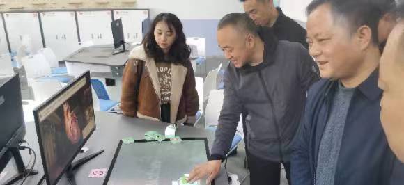 胡小云向兄弟学校重点介绍了我校AI智慧实验室筹建运行等情况,何强生等饶有兴趣的详细询问实验室操作流程,并对我校拥有如此先进的教学实验设备表示赞赏,认为二中先进的教学设备及超前的教学理念值得借鉴学习。