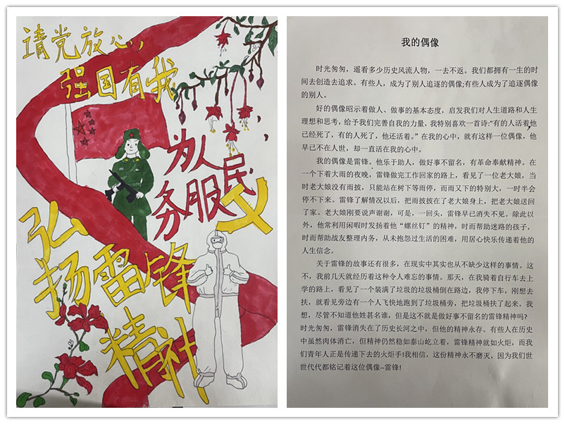3月中旬,学校团委陆续收到“我心中的雷锋”绘画作品、征文作品,一笔一画、一字一句,雷锋精神的种子已在广大二中学子心中悄然发芽。