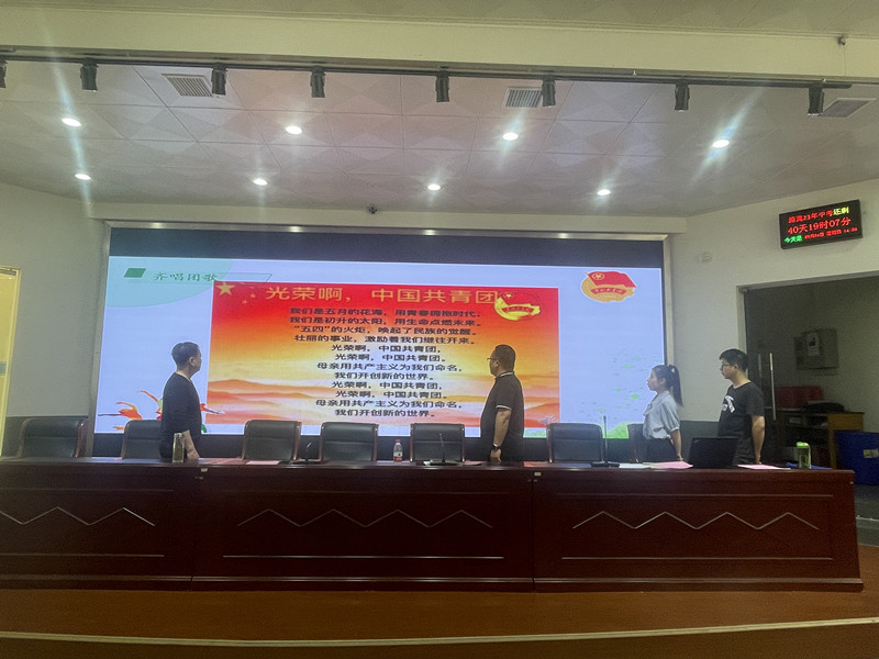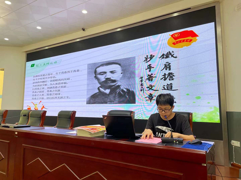 五四精神,薪火相传。在“忆·五四运动”环节,短片《五四运动》的播放,加深了团员青年对这场爱国运动的认识。全体团员青年在团委副书记徐盛昊带领下,跟读《青年》一段:“以青春之我,创建青春之家庭,青春之国家,青春之民族……”感悟李大钊对中国青年寄语的厚望。