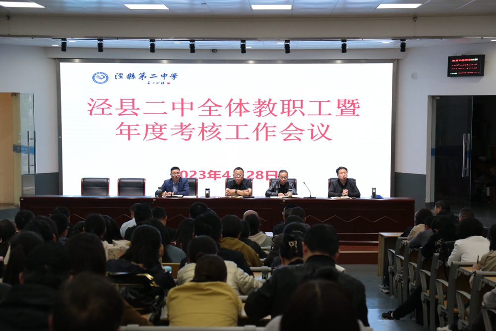 副校长王松华就学校招生、人事工作、高中部教学、学校教研等相关工作进行了布置与提醒。会议布置了2022年度考核工作,王松华详细解读了《泾县二中2022年度教职工考核工作实施方案(草案)》,该方案经全体教职工举手表决一致通过。
