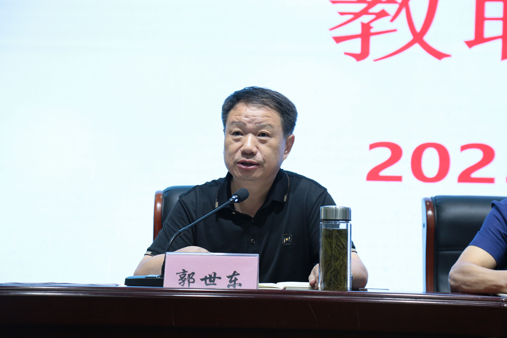 副校长郭世东总结了本学期政教处、留守儿童服务中心、团委、视导室、教导处初中部所开展的各项工作,对七、八年级期末考试成绩和2023年中考成绩做了详细分析,并就暑期分管重点工作做了要求。