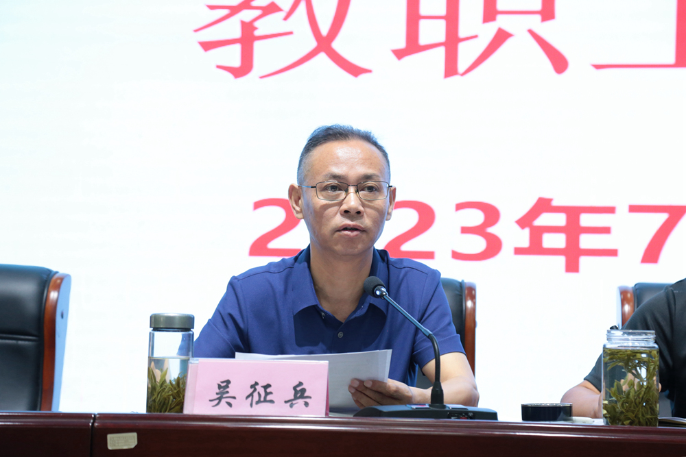 副书记吴征兵总结了本学期总务处、科学馆、信息中心和工会所开展的各项工作,重点对意识形态和党建工作做了要求和提醒,他要求分管的处室谋划好暑假的相关工作,建立相关台账。
