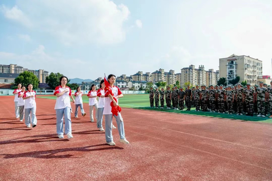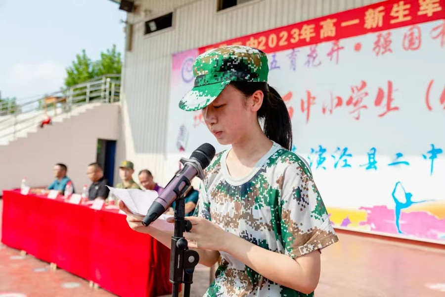 历练青春,不惧骄阳。军训学员代表高一(3)班汪悦同学和大家分享了军训场上留下的汗水和成长中留下的印记,和全体军训学员发出了“愿以我辈之青春,捍卫盛世之中华”的铮铮誓言。
