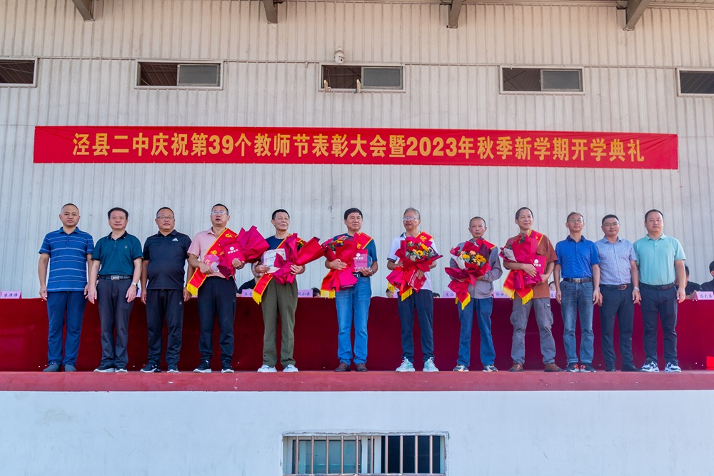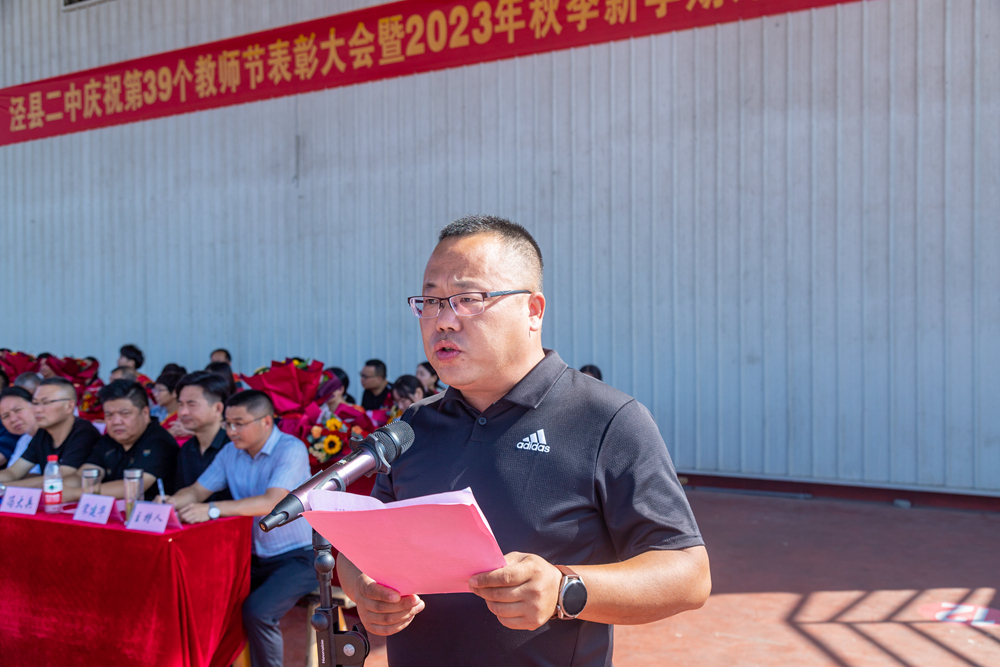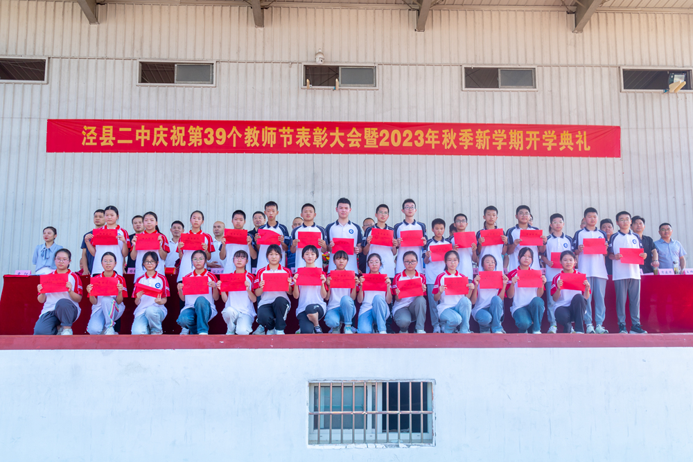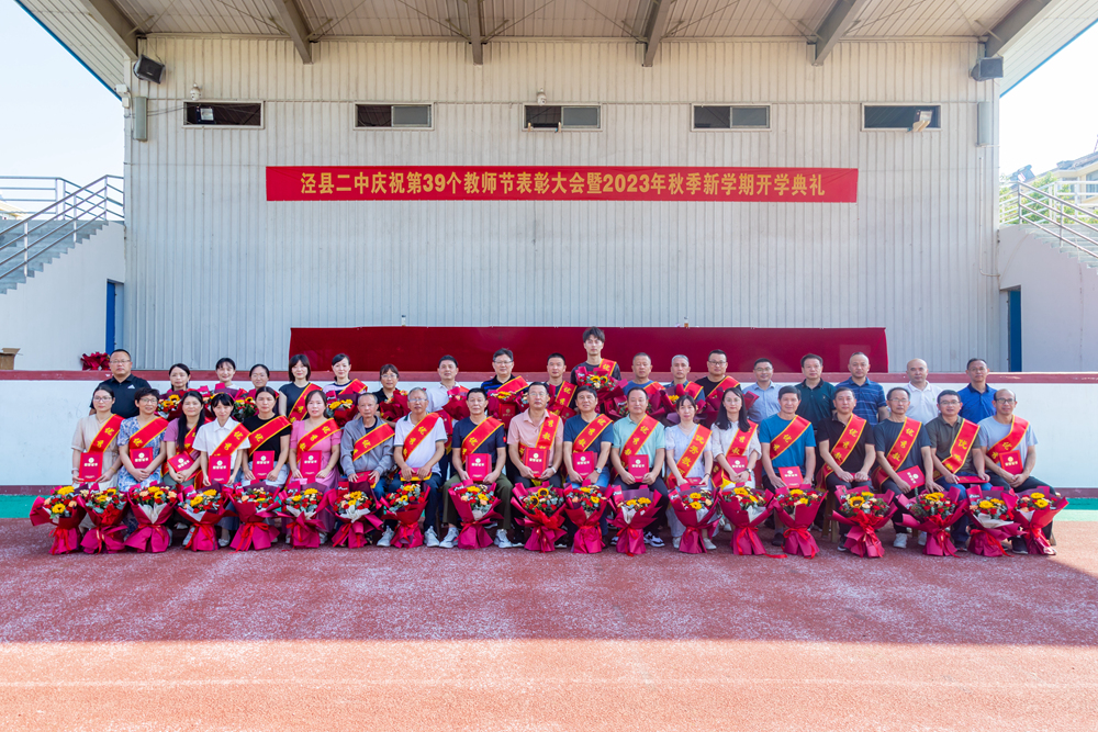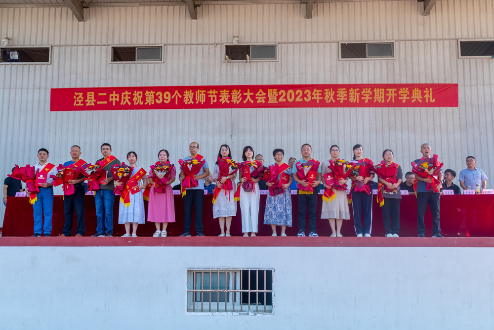 一朝沐杏雨,一生念师恩。为庆祝第39个教师节,弘扬教书育人、爱岗敬业的良好师德风尚,9月8日上午,泾县二中师生在校运动场隆重集会,庆祝第39个教师节,举行秋季新学期开学典礼,副校长王松华主持大会。