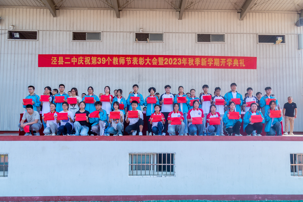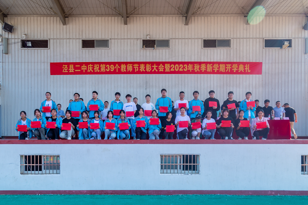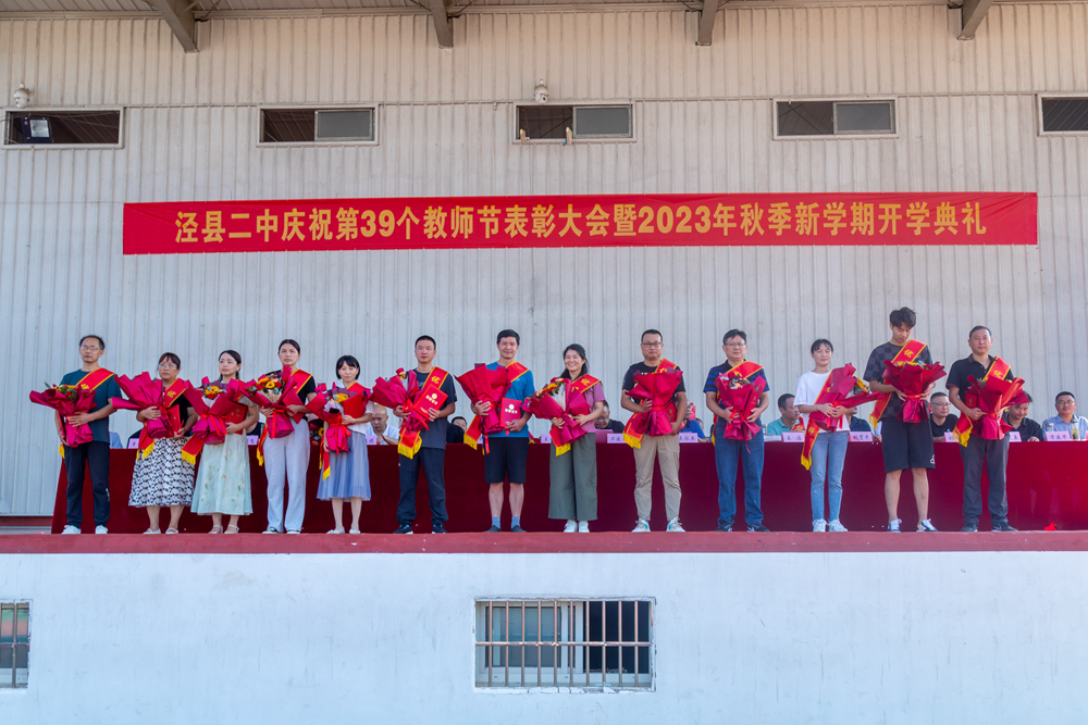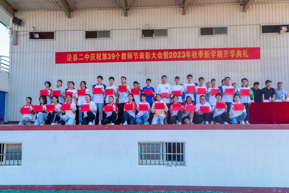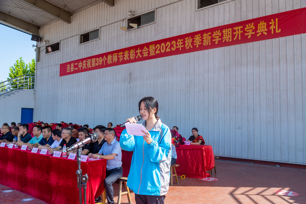 一朝沐杏雨,一生念师恩。为庆祝第39个教师节,弘扬教书育人、爱岗敬业的良好师德风尚,9月8日上午,泾县二中师生在校运动场隆重集会,庆祝第39个教师节,举行秋季新学期开学典礼,副校长王松华主持大会。