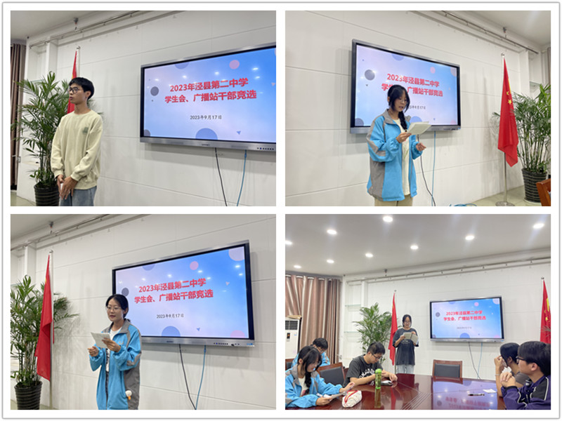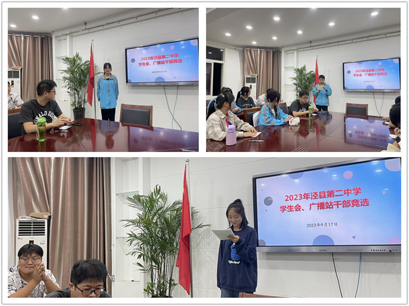 为充分发挥学生组织的积极作用,更好地满足同学们的意愿和需求,促进我校学生会、广播站工作的长远发展,9月17日傍晚,泾县第二中学2023-2024学年度学生会干部、广播站管理人员换届竞聘会在育才楼第一会议室举行,校团委指导召开此次会议。