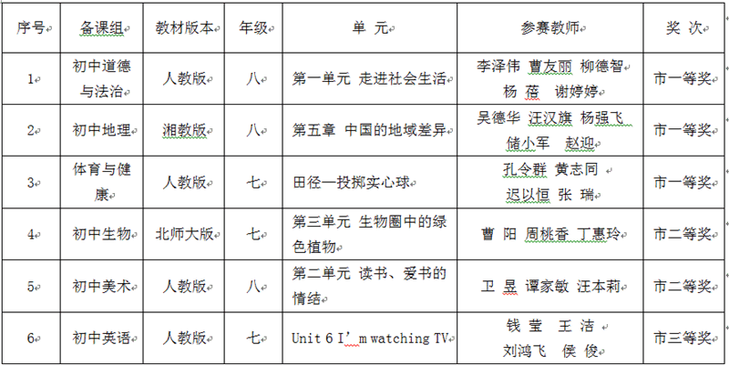 对本次评比中取得优异成绩的教研组、备课组和老师们表示热烈的祝贺!