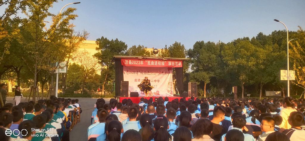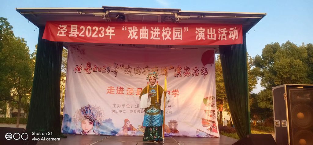 为了更好传承和普及传统文化,积极响应省、市、县推进戏曲进校园活动号召,引导学生传承中华文明1024,我校在学校运动场地顺利举行了泾县戏曲进校园二中专场演出活动。校党委书记、校长卫建平等校领导及相关部门负责人、学校戏曲爱好者、起始年级师生集中观看了一场精彩的戏曲演出。