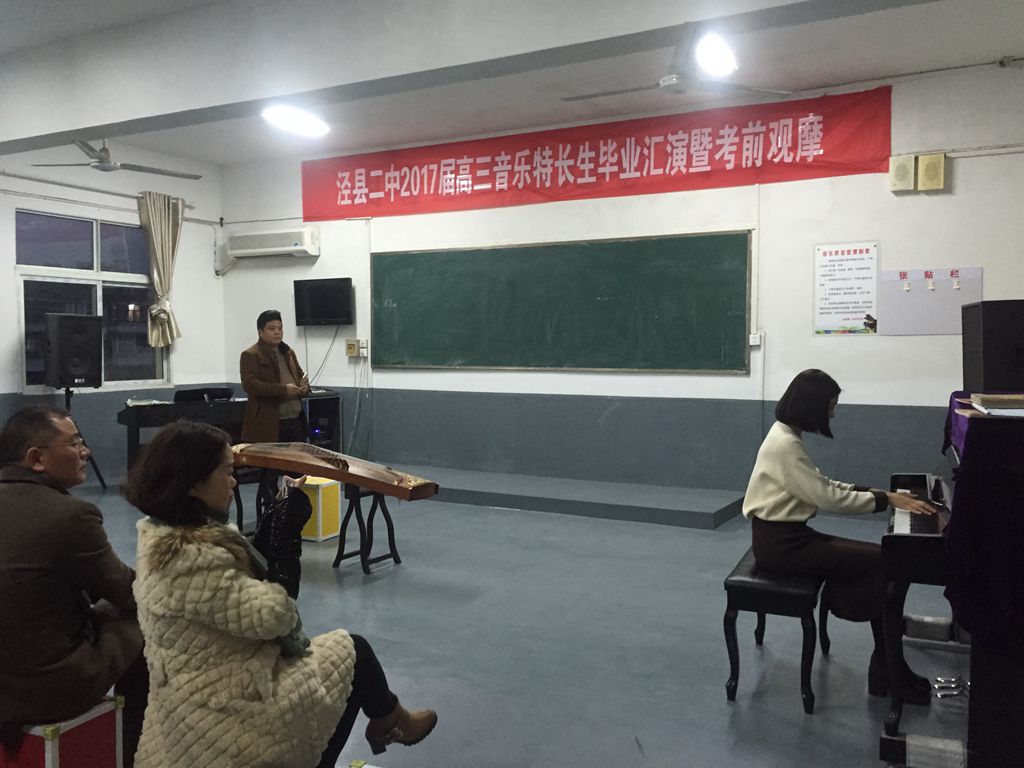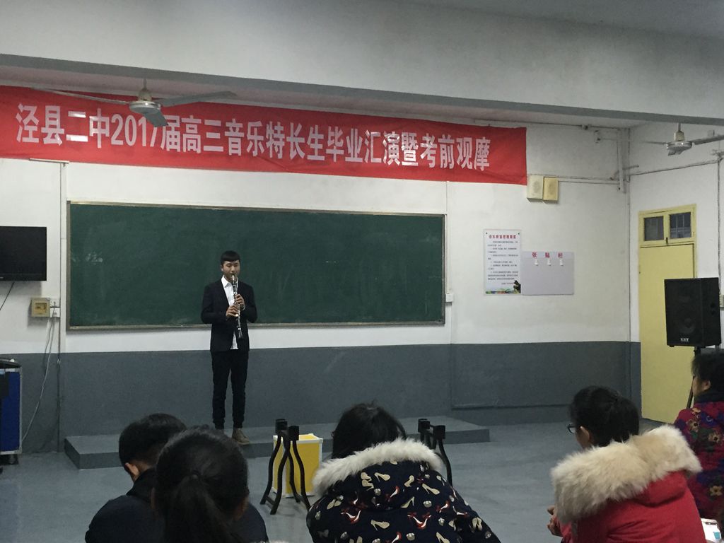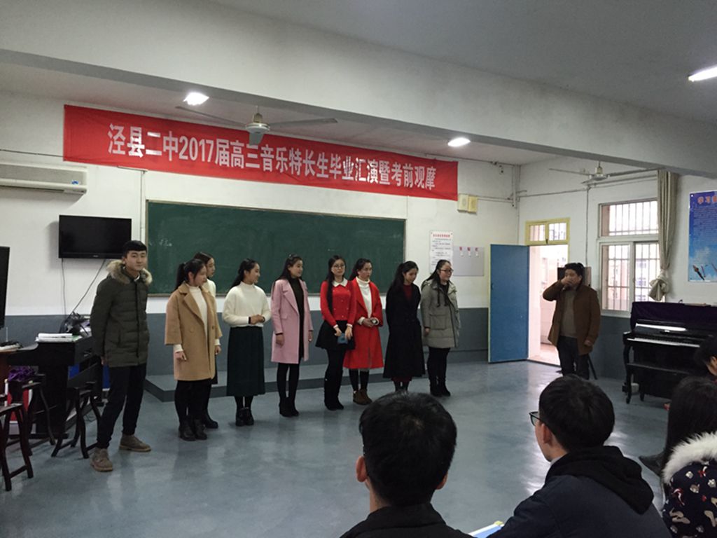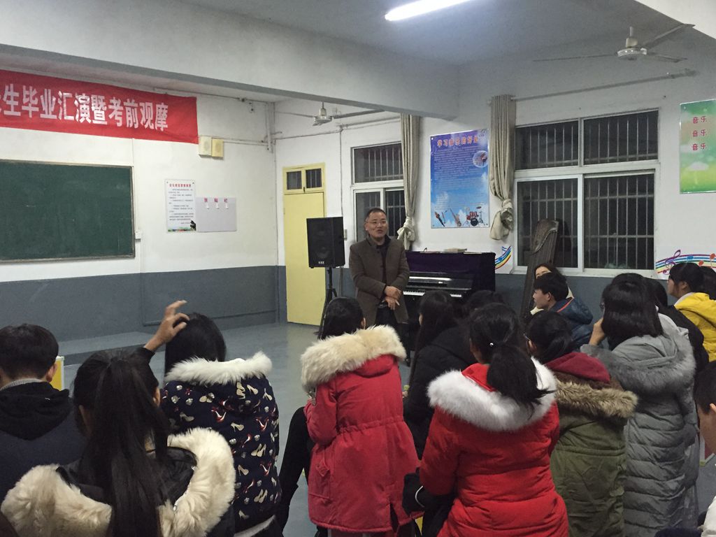 在我校喜庆40周年华诞之际,为全面检阅我校高三音乐特长生专业集训成果,为学生出征省音乐专业考试鼓气壮行,12月26日下午,我校在艺术楼四楼音乐室举行2017届音乐特长生毕业汇报演出暨考前观摩活动。校领导班子及各处室负责人观看了演出。高二音乐特长生、高一音乐兴趣班学生参加活动。