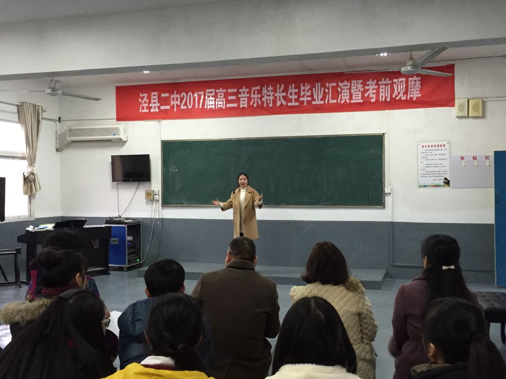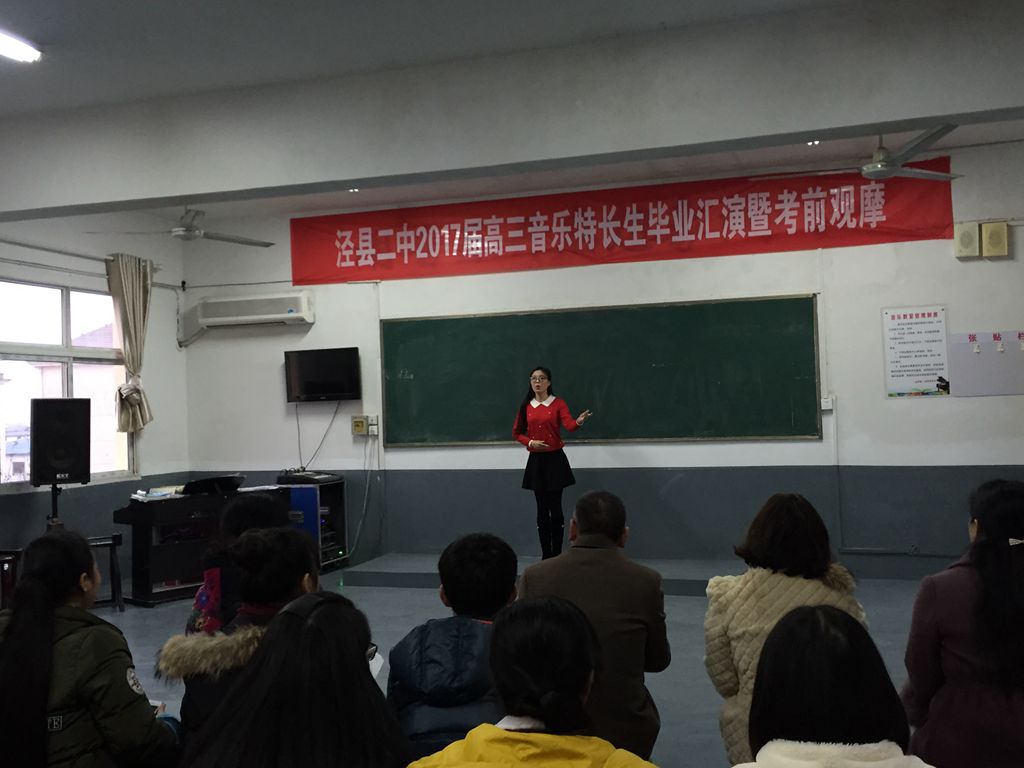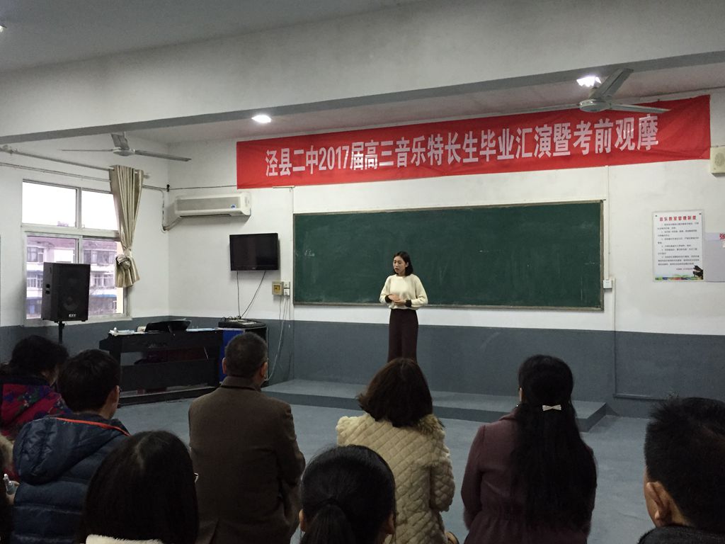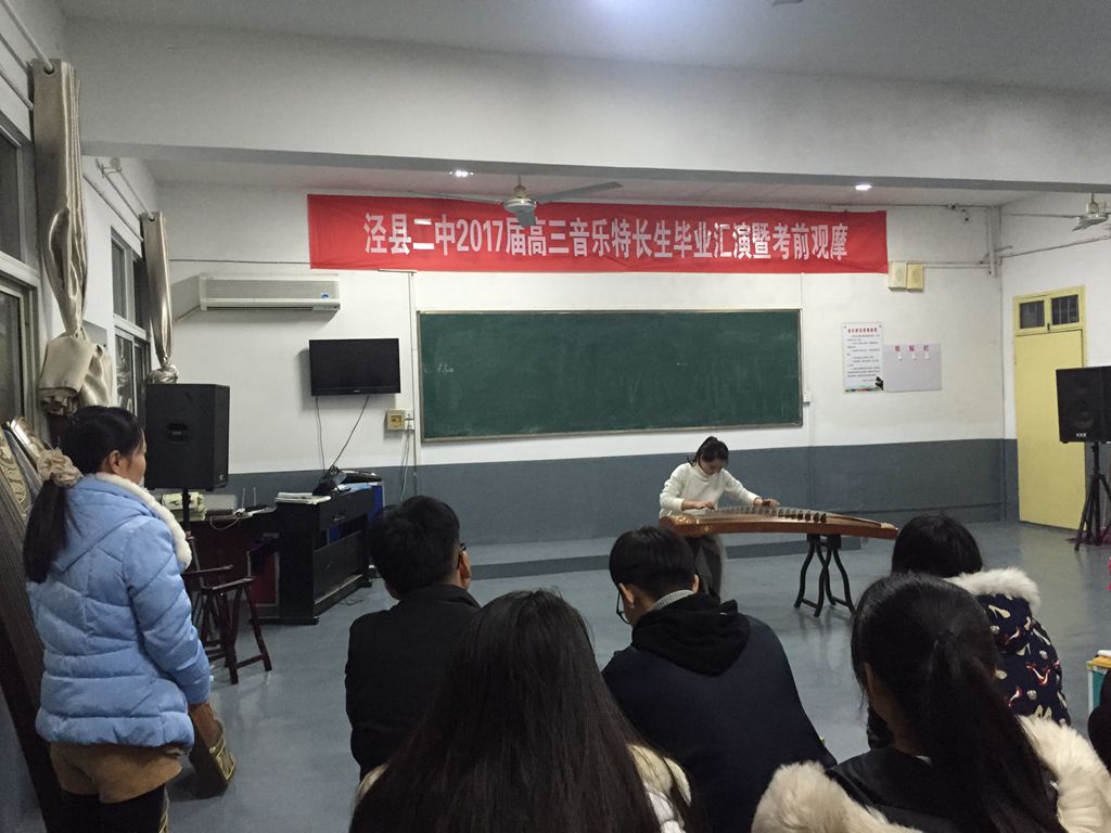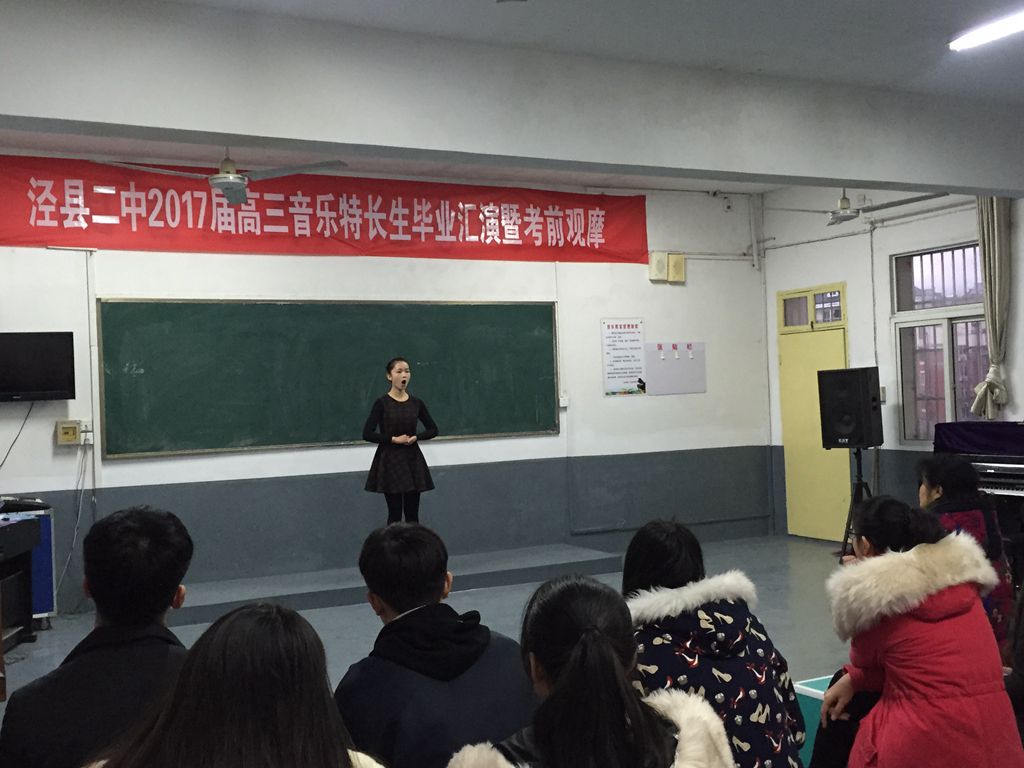 在我校喜庆40周年华诞之际,为全面检阅我校高三音乐特长生专业集训成果,为学生出征省音乐专业考试鼓气壮行,12月26日下午,我校在艺术楼四楼音乐室举行2017届音乐特长生毕业汇报演出暨考前观摩活动。校领导班子及各处室负责人观看了演出。高二音乐特长生、高一音乐兴趣班学生参加活动。