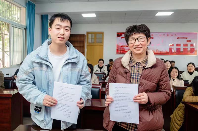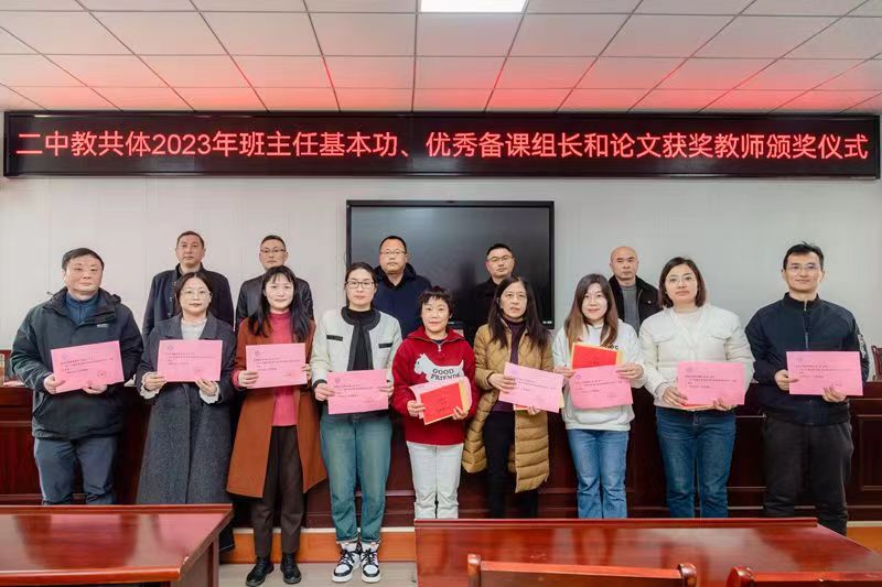 第二阶段是二中2023年“蓝青工程”结对仪式、优秀备课组、优秀教育教学论文和班主任基本功大赛获奖教师表彰仪式。二中党委副书记、校长卫建平,党委委员、副校长王松华,政教处主任刘鸿飞,教科室副主任汪汉旗、查超群及受表彰教师参加仪式。“蓝青工程”为青年教师的成长搭建了平台,表彰仪式既是对广大一线教师潜心教育科研的肯定,也是他们砥砺前行的动力,正如卫校长在总结讲话中指出,教师作为教育的关键性因素,要走出舒适圈,将教学与教研相结合,修身储能,笃行致远,在自己的专业提升中收获成就感与幸福感,共同助推学生的成长和学校的发展!