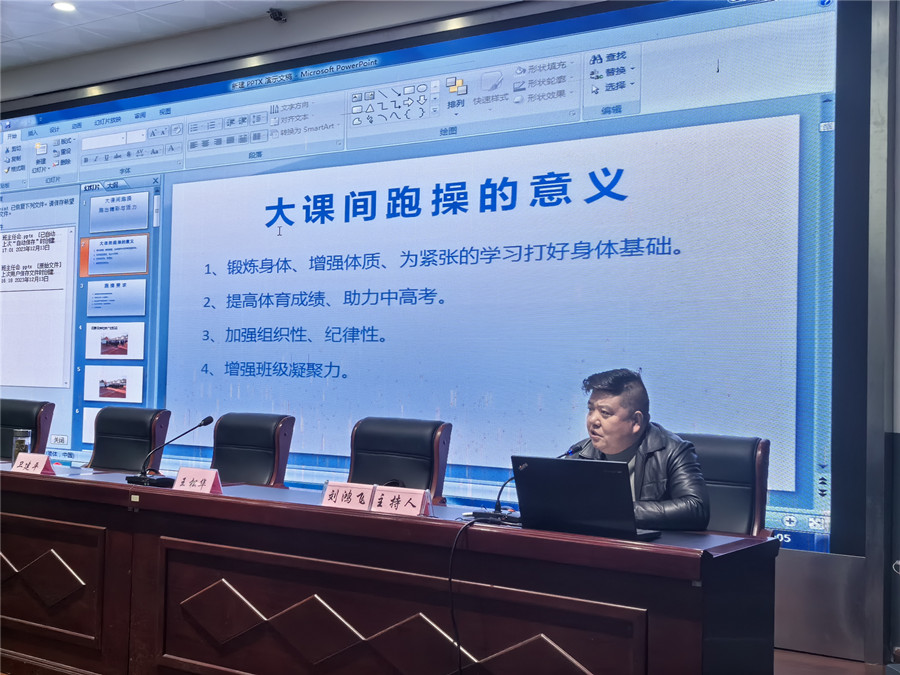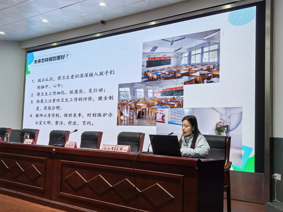 会上,总务处副主任曹阳围绕《树立文明健康意识,养成良好卫生习惯》,对学校卫生工作未来怎样做到更好提出了建议;体艺处主任冯大兵围绕《大课间跑操:跑出精彩与活力》,对大课间跑操的意义和要求进行了再次强调;政教处主任刘鸿飞就如何加强班级常规管理和文化建设提出了要求。接着,副校长郭世东对加强班级安全管理、关注班级教育教学、关注学生心理健康、开好“微”班会等工作进行了布置;副校长王松华就如何创建一个优秀的班集体,成就一名优秀的班主任谈了自己的见解和看法。
