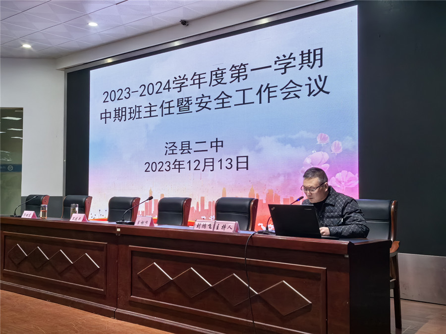 12月13日下午,我校在阶梯教室召开2023-2024学年度第一学期中期班主任暨安全工作会议,全体班主任参会,会议由政教处主任刘鸿飞主持。