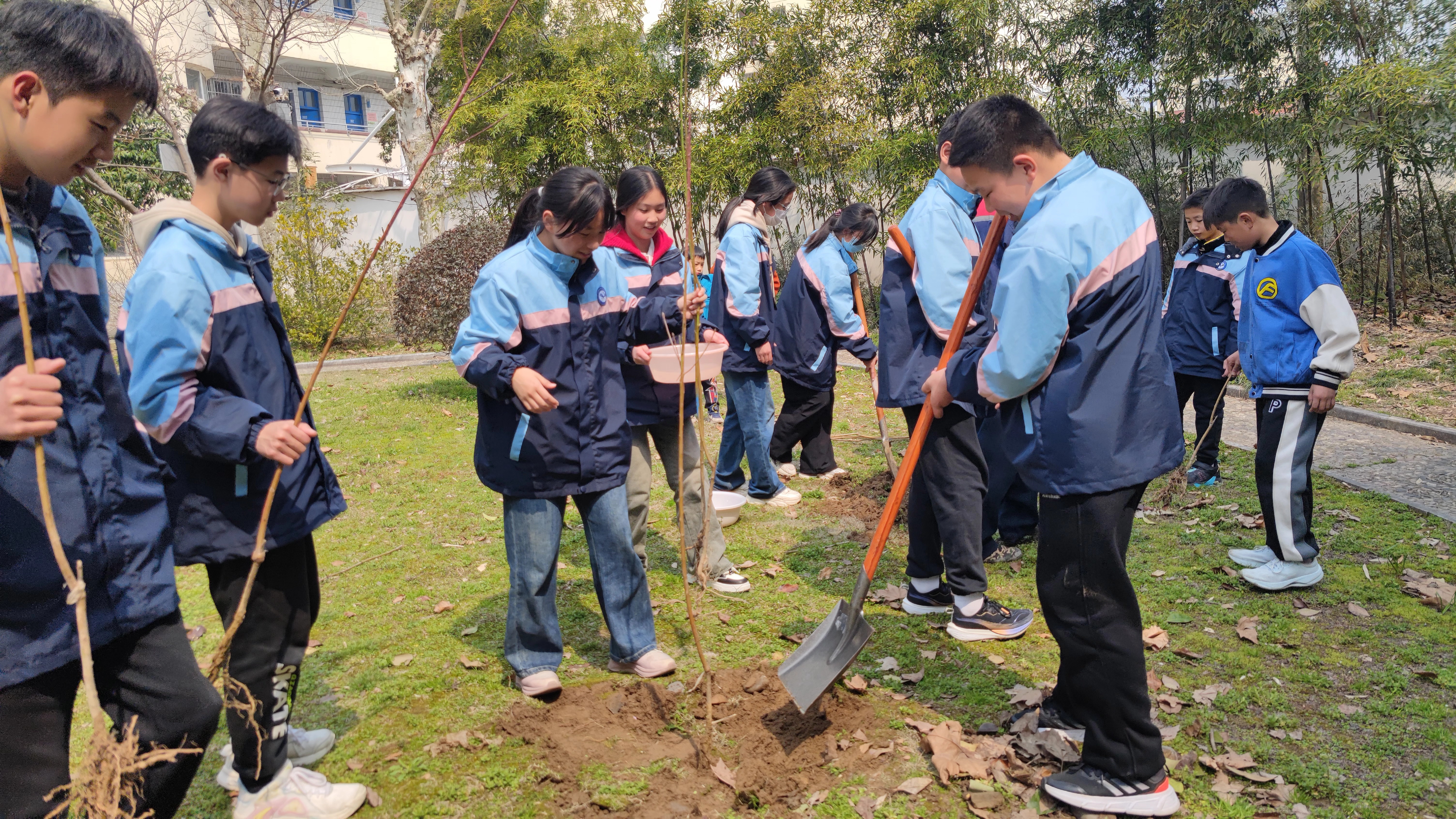 风吹新绿,植树正当时。本次植树节活动的开展不仅让同学们深入地了解到植树节的意义,提高了同学们爱护自然、绿化校园的意识,同时,也让孩子们参与到劳动中来,感受到了劳动之美。在这春意盎然的阳春三月,我们一起种下绿色的希望;在这茵茵草色之间,我们将春天种进每一个明天!