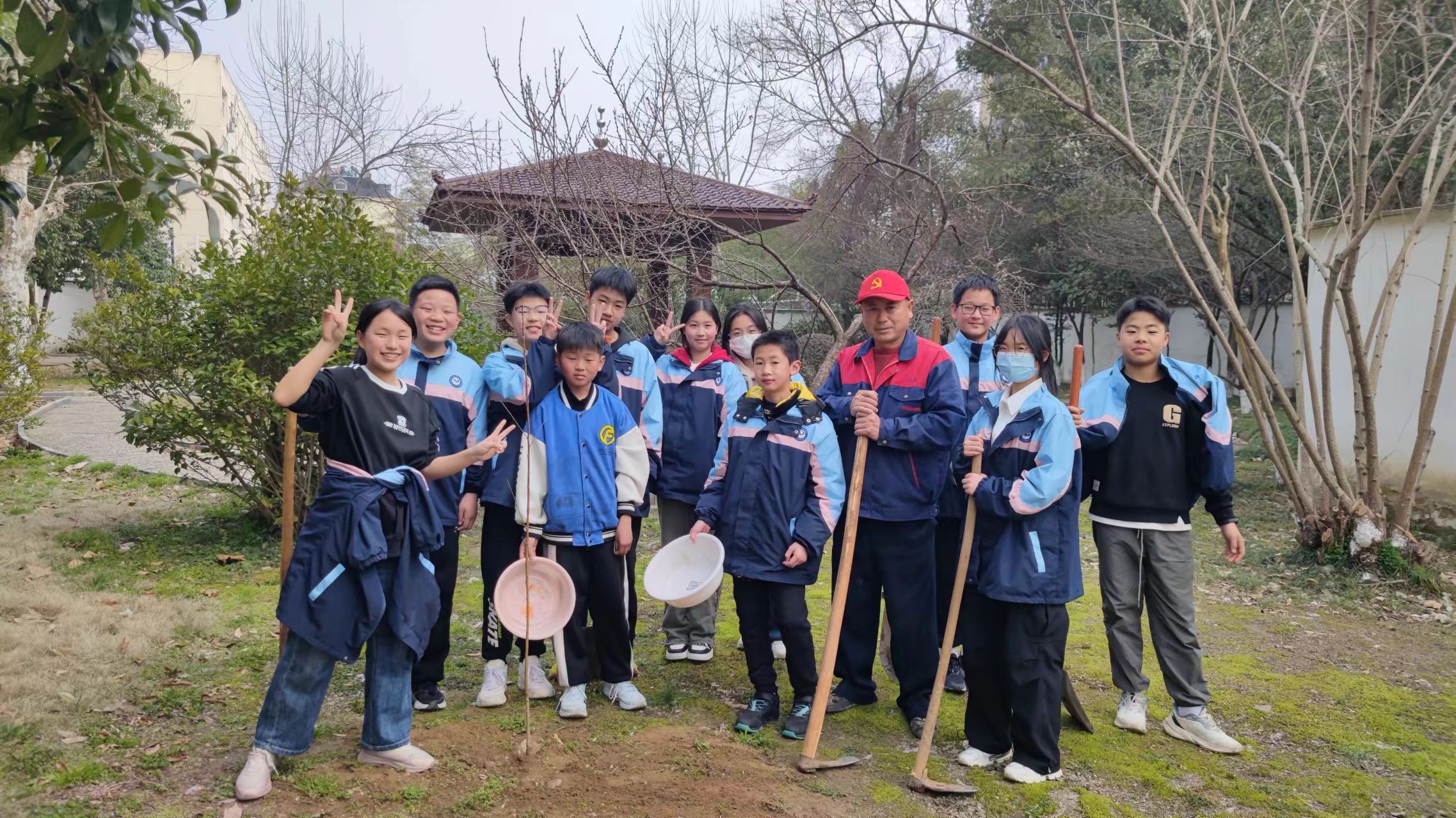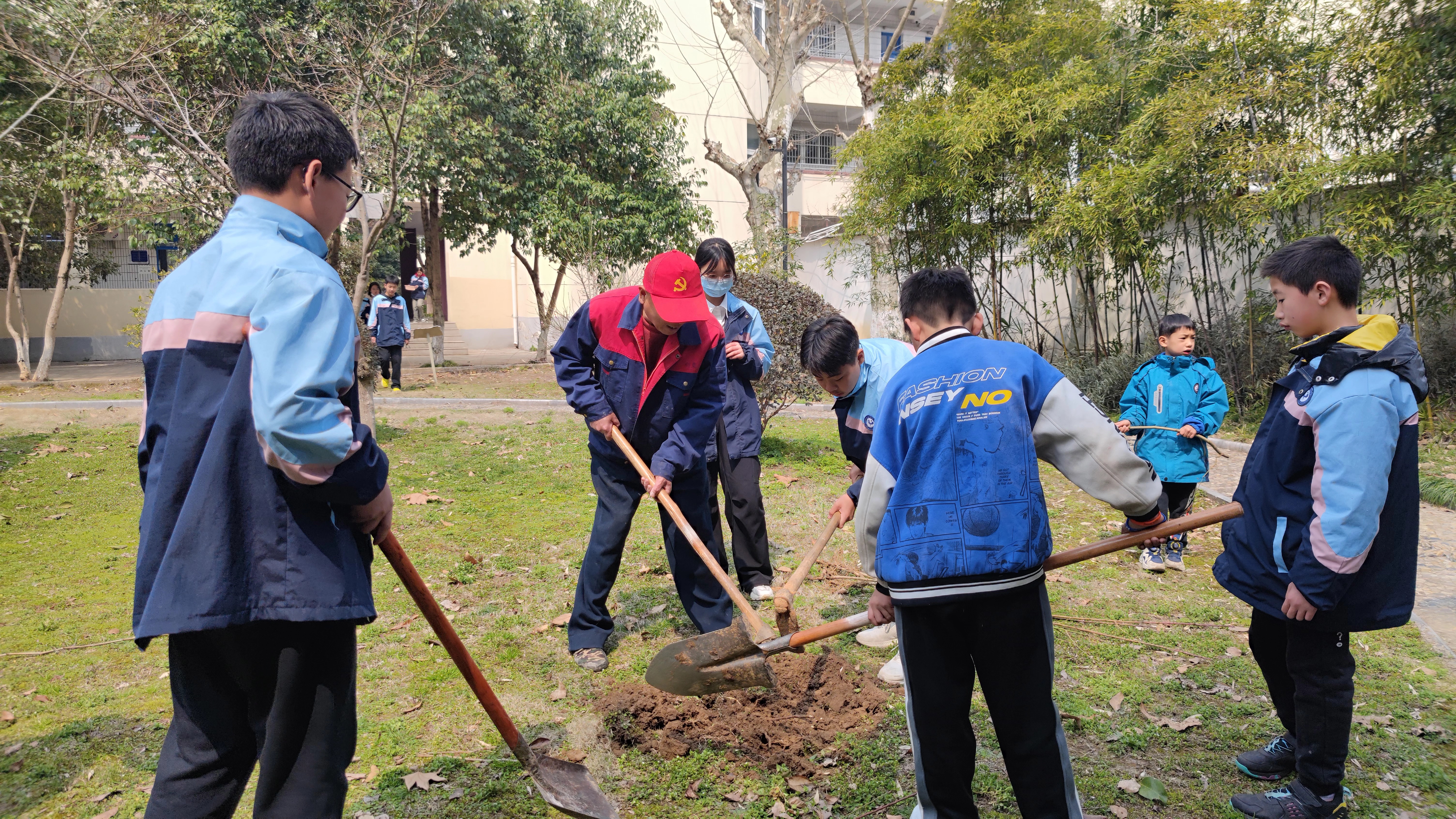 孟春之月,盛德在木。2024年3月12日是我国第46个全民义务植树节,为了美化校园环境,提高师生爱护校园、保护环境的生态意识,泾县第二中学初中寄宿班开展了“晓一叶之理,种一树美好”主题植树节活动。