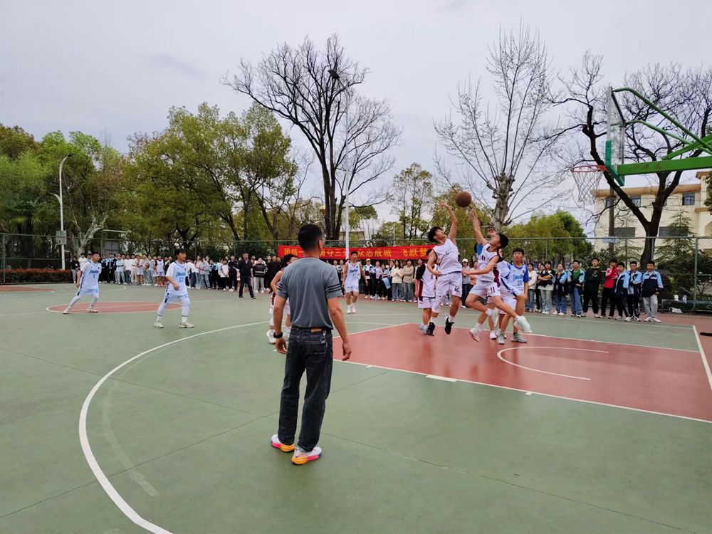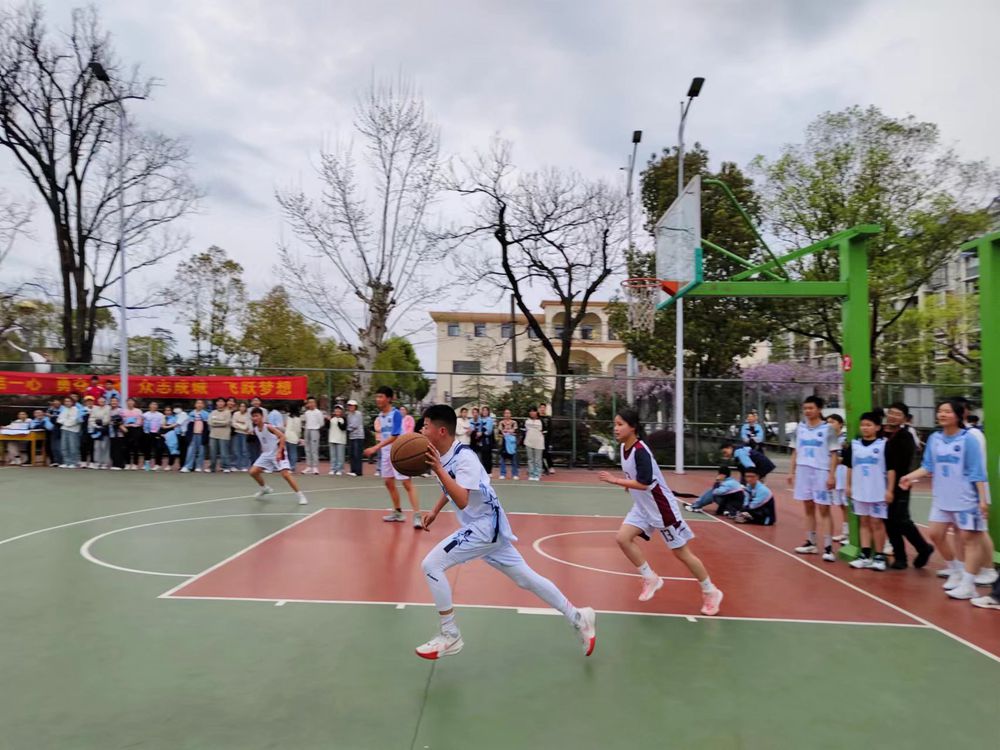 为全面贯彻党的教育方针,落实“双减”政策,丰富学生的课余生活,4月1日下午课外活动,我校第十一届八年级篮球赛顺利开赛。校党委副书记、校长卫建平为比赛开球,学校相关部门及八年级师生观看赛。